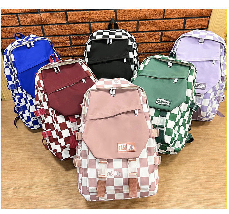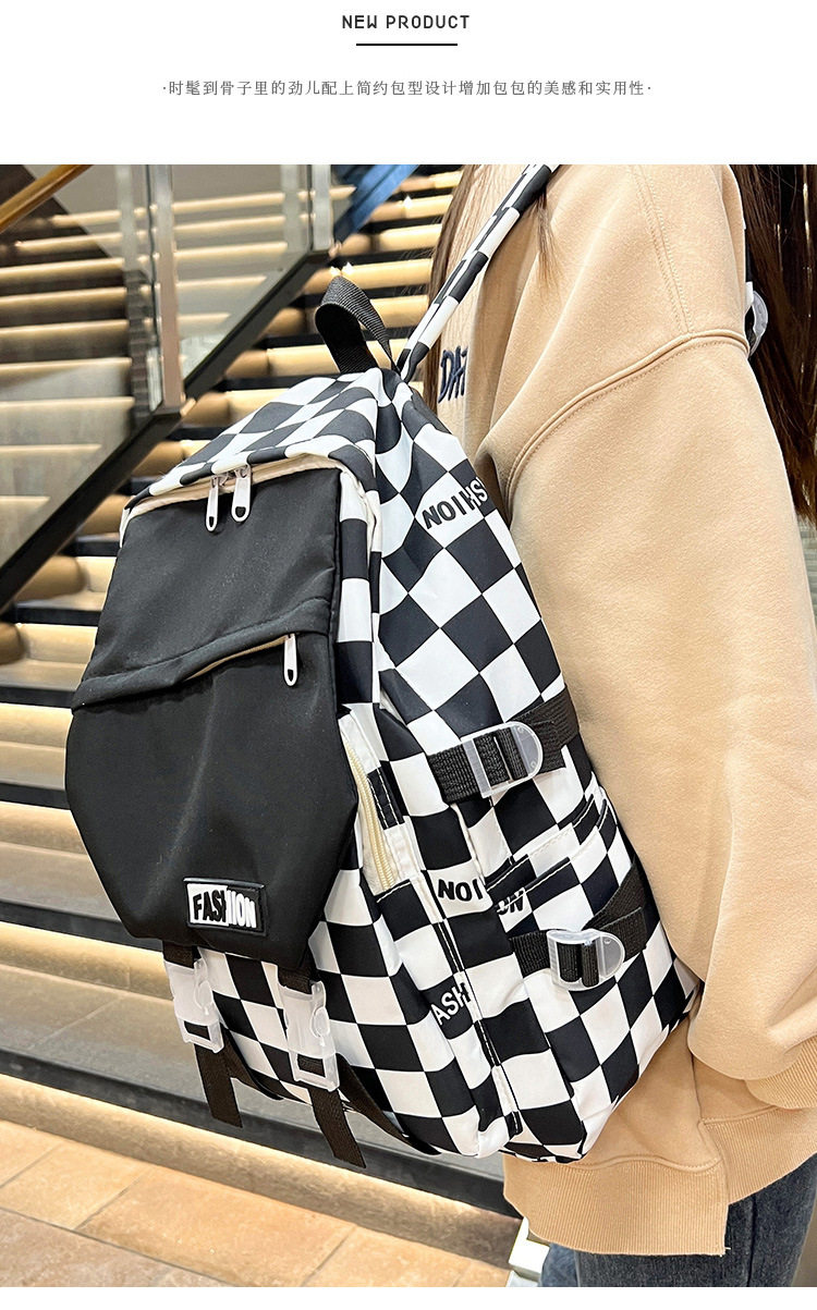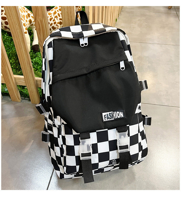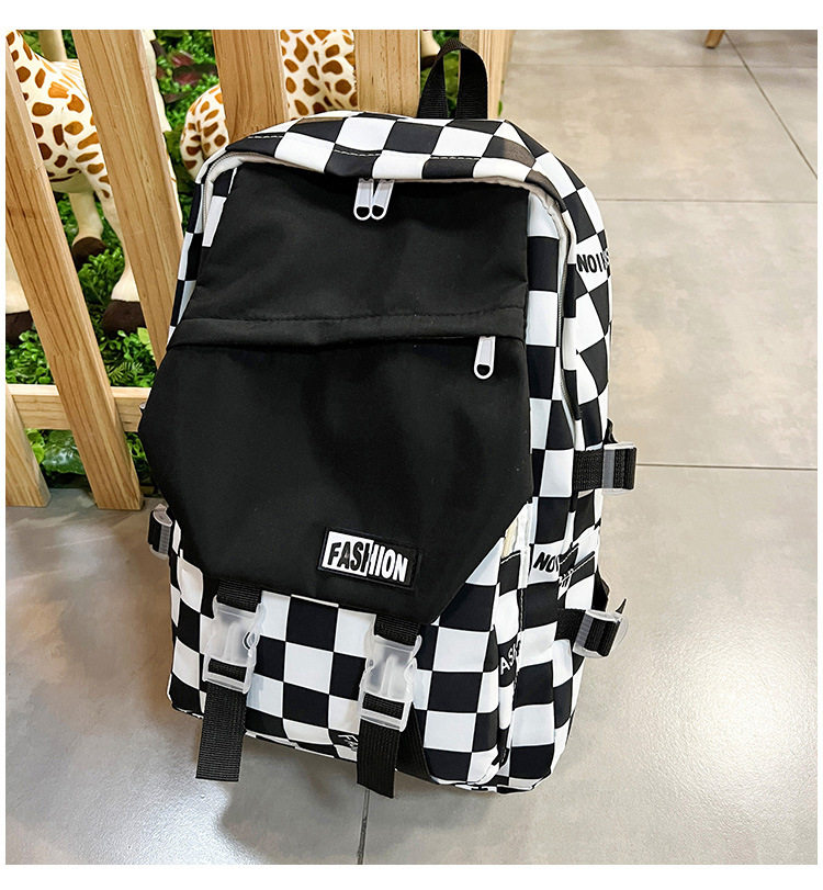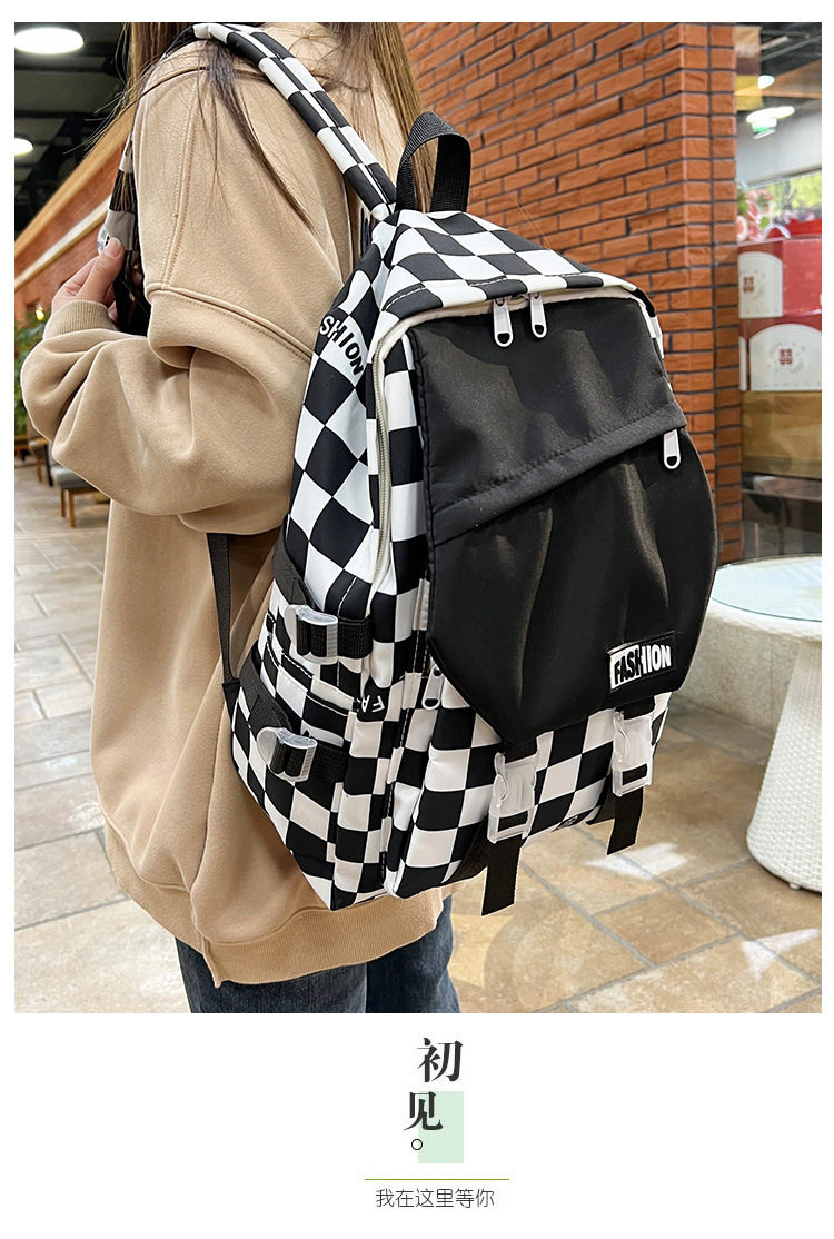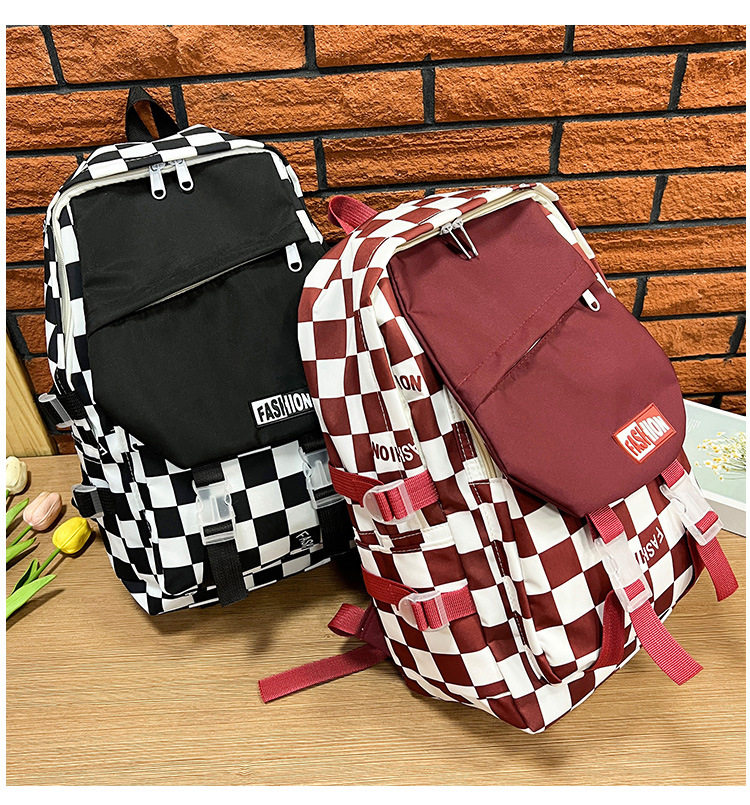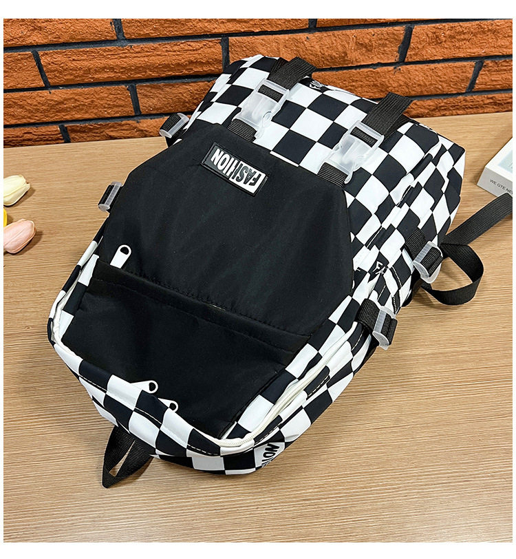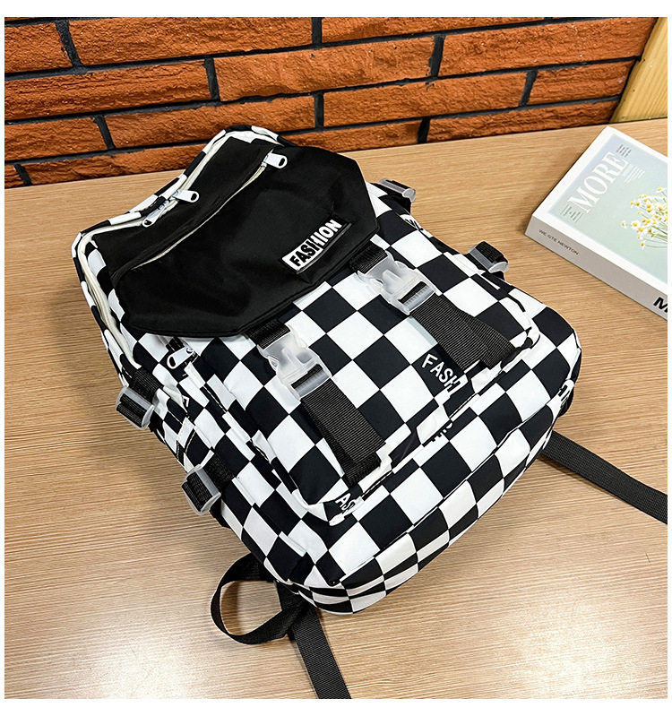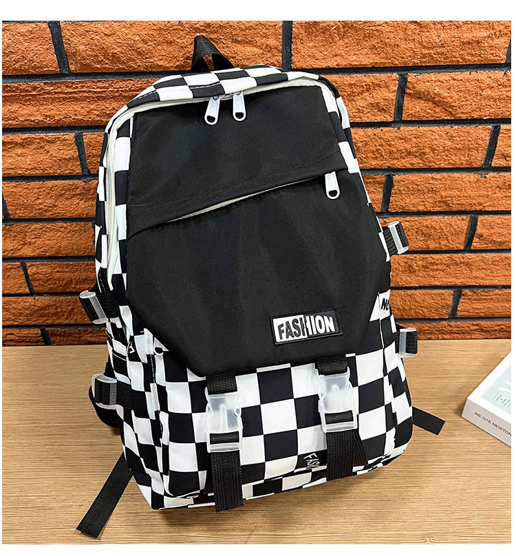 new fashion Korean style cross-border business simple chessboard large capacity trendy student backpack,School Backpacks,Kids’ Backpacks