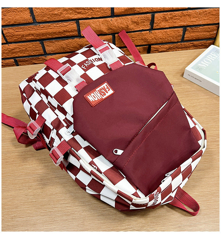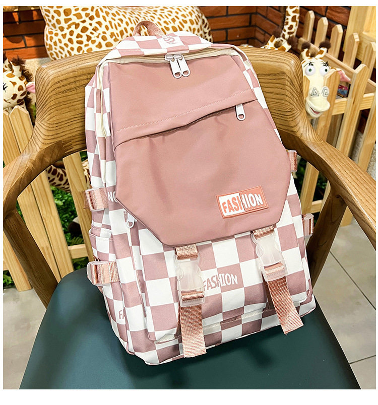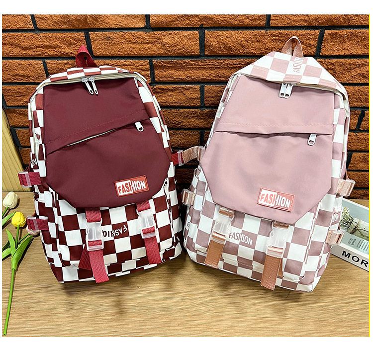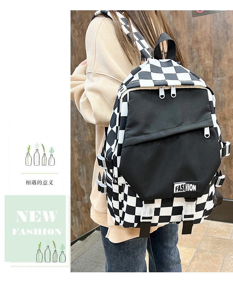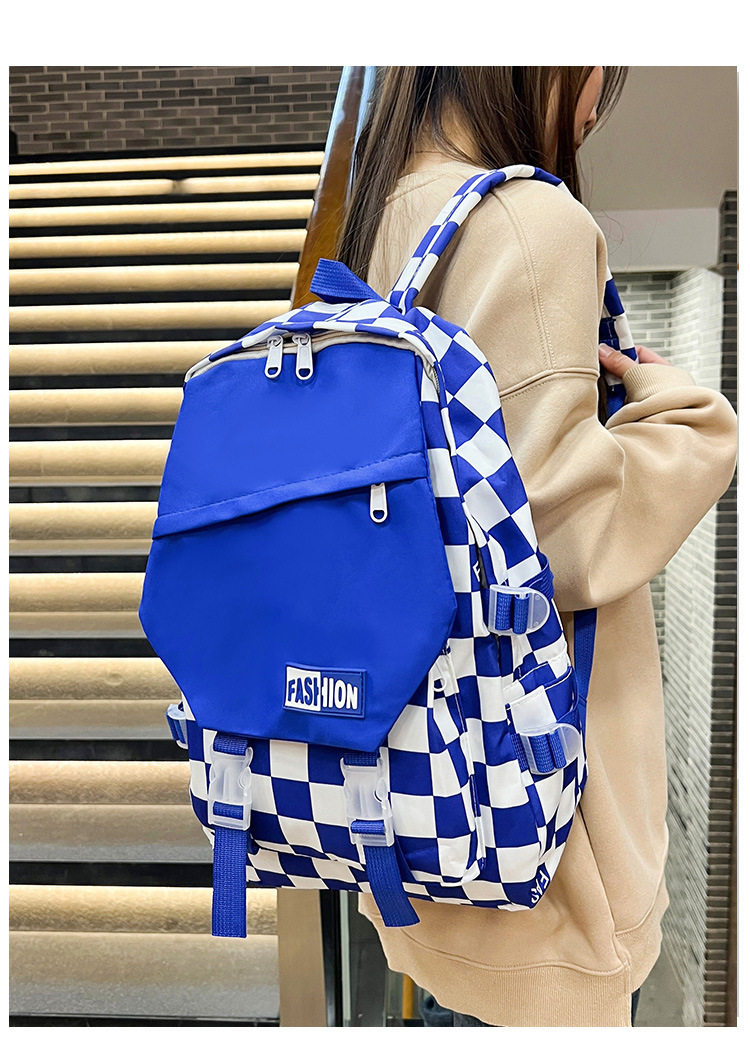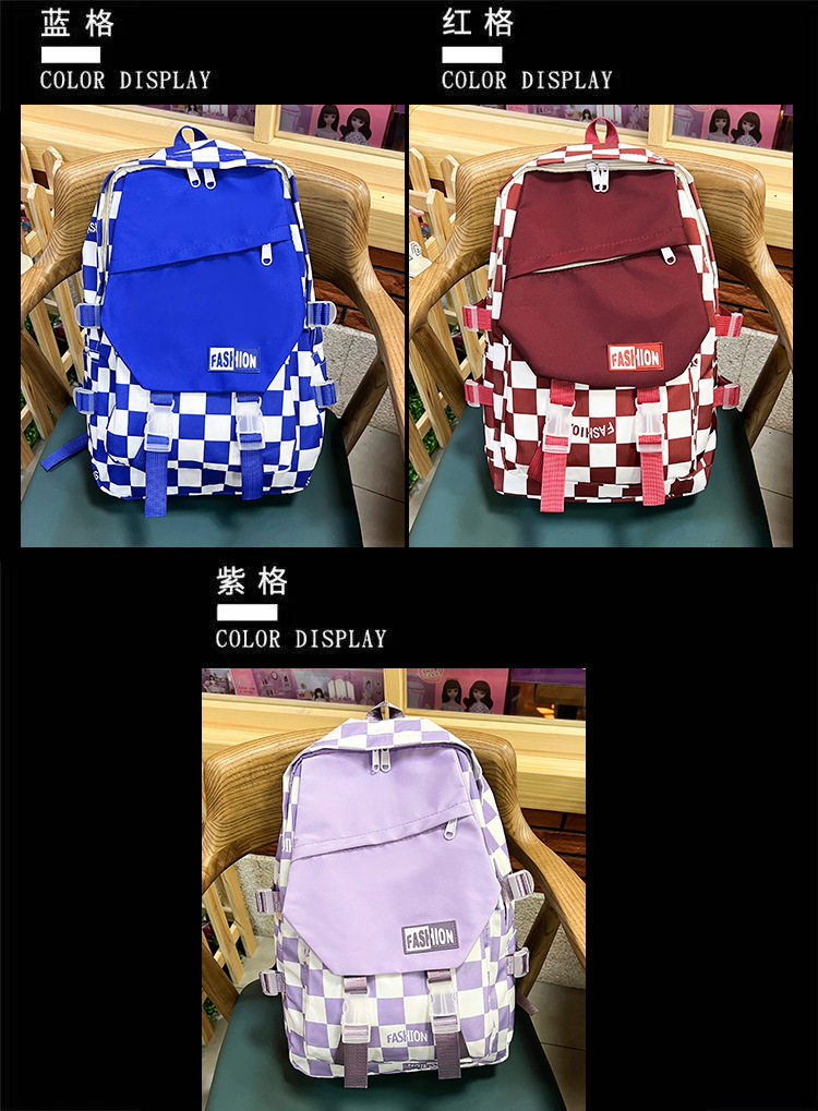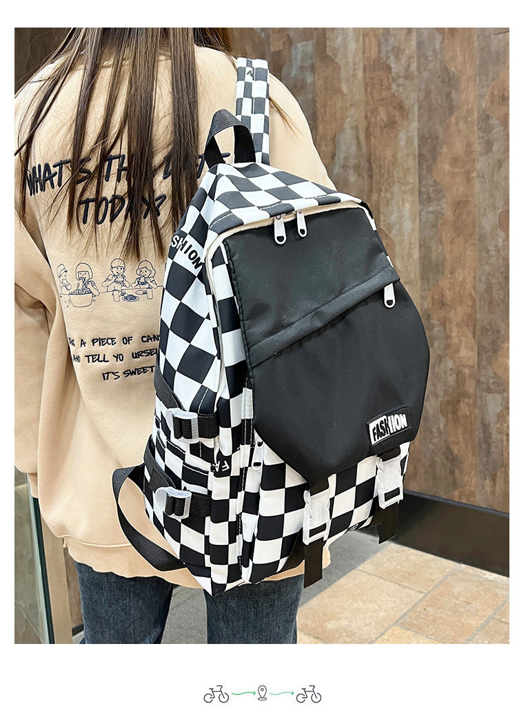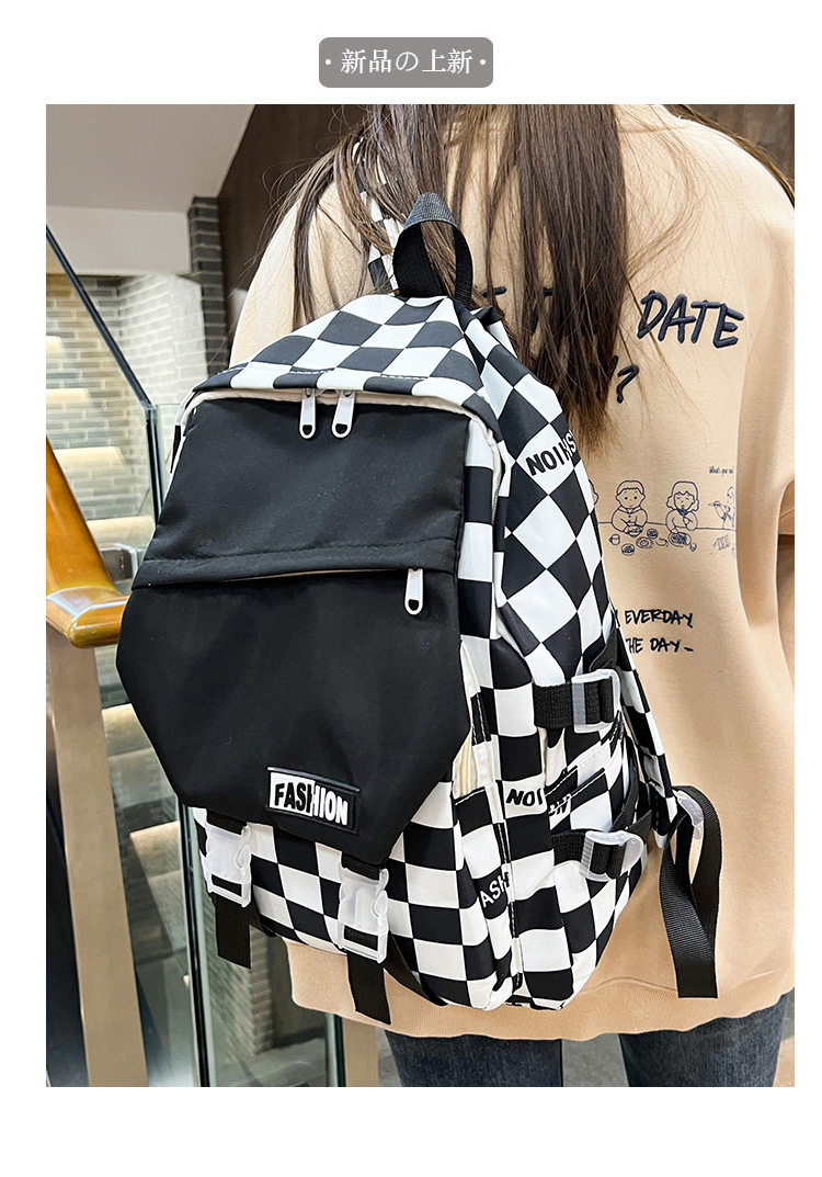 new fashion Korean style cross-border business simple chessboard large capacity trendy student backpack,School Backpacks,Kids’ Backpacks