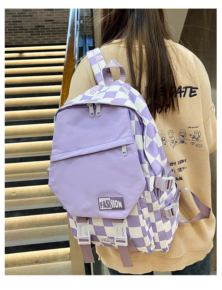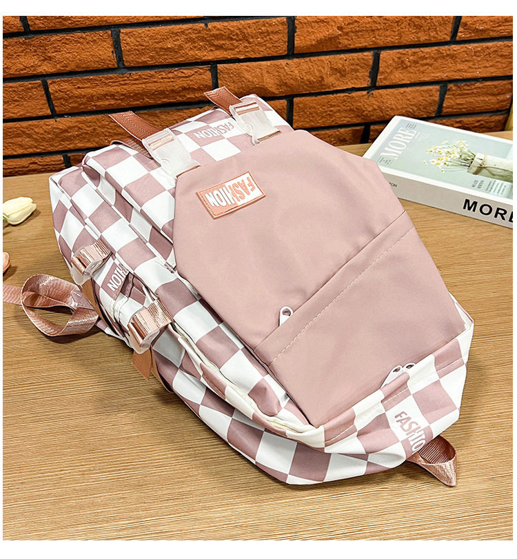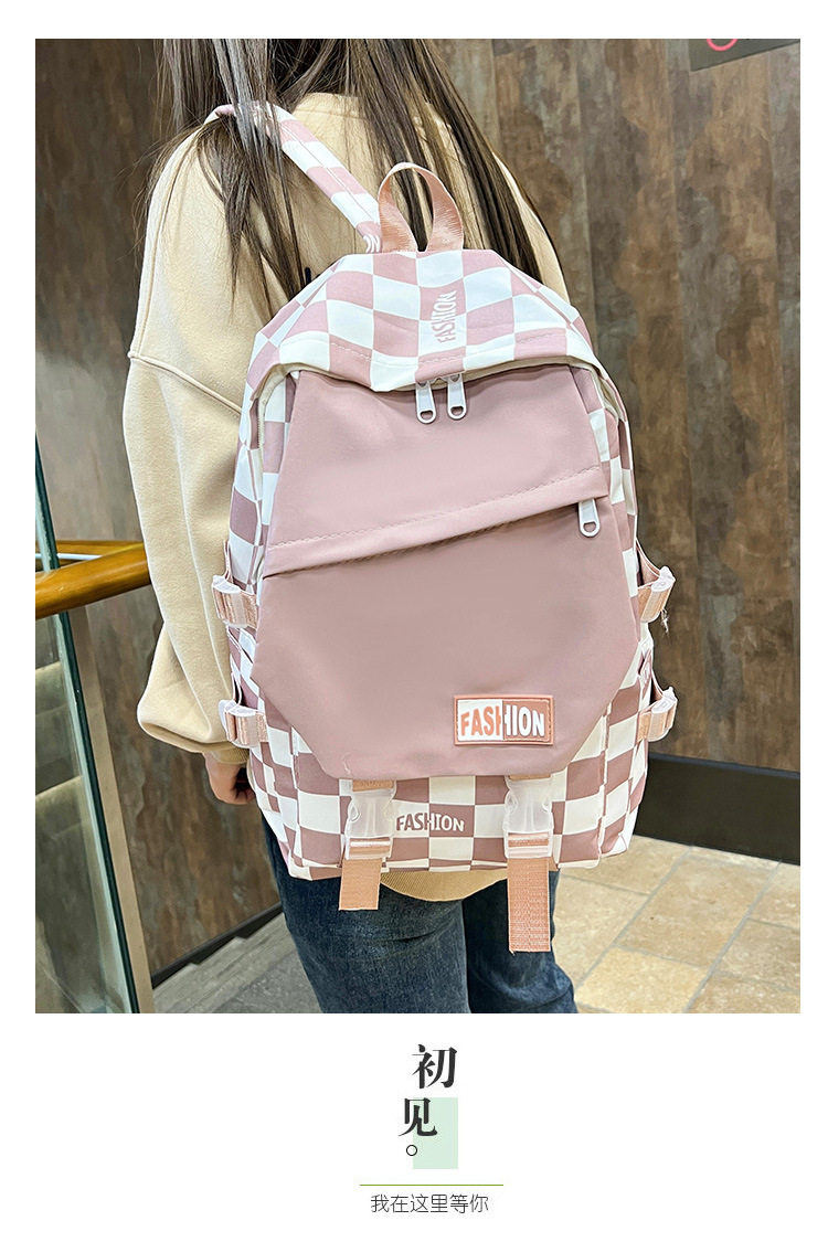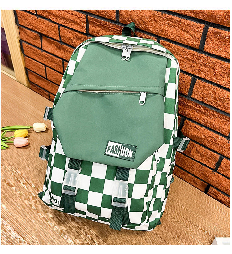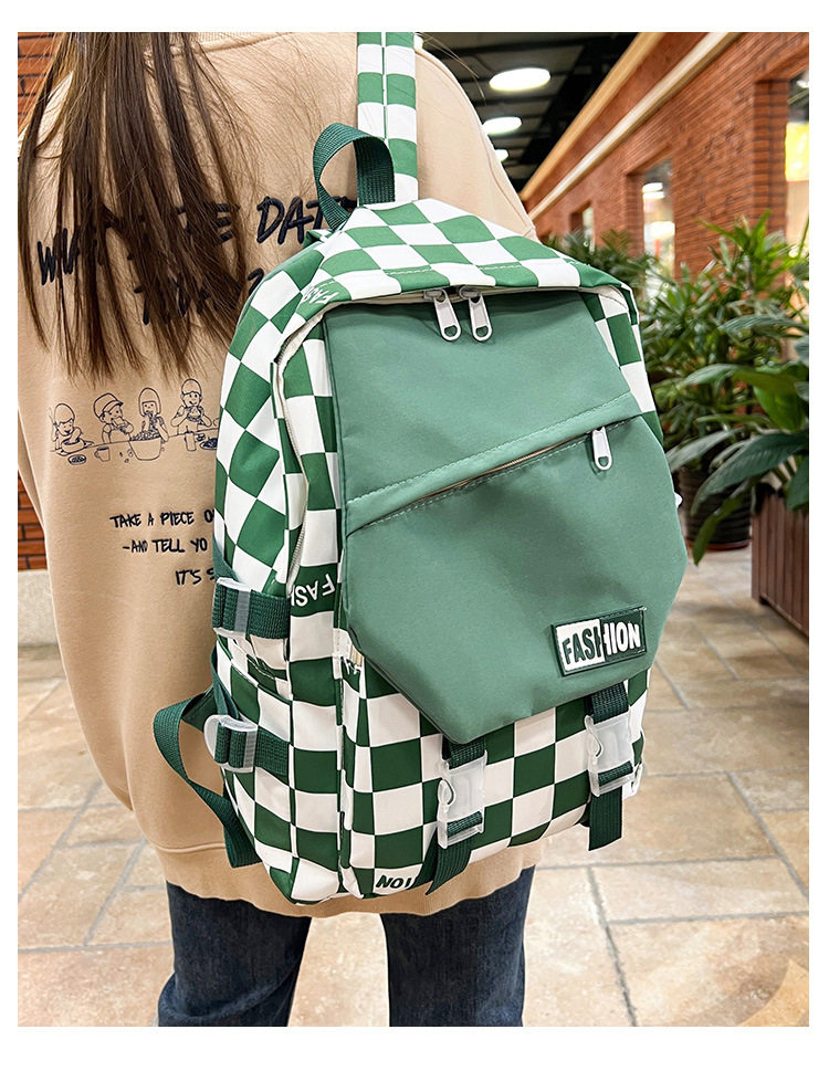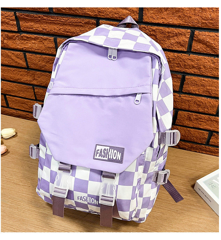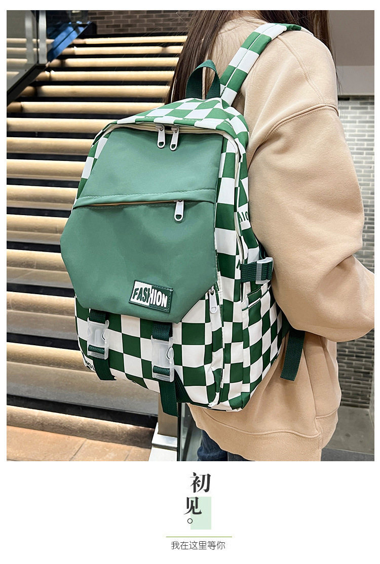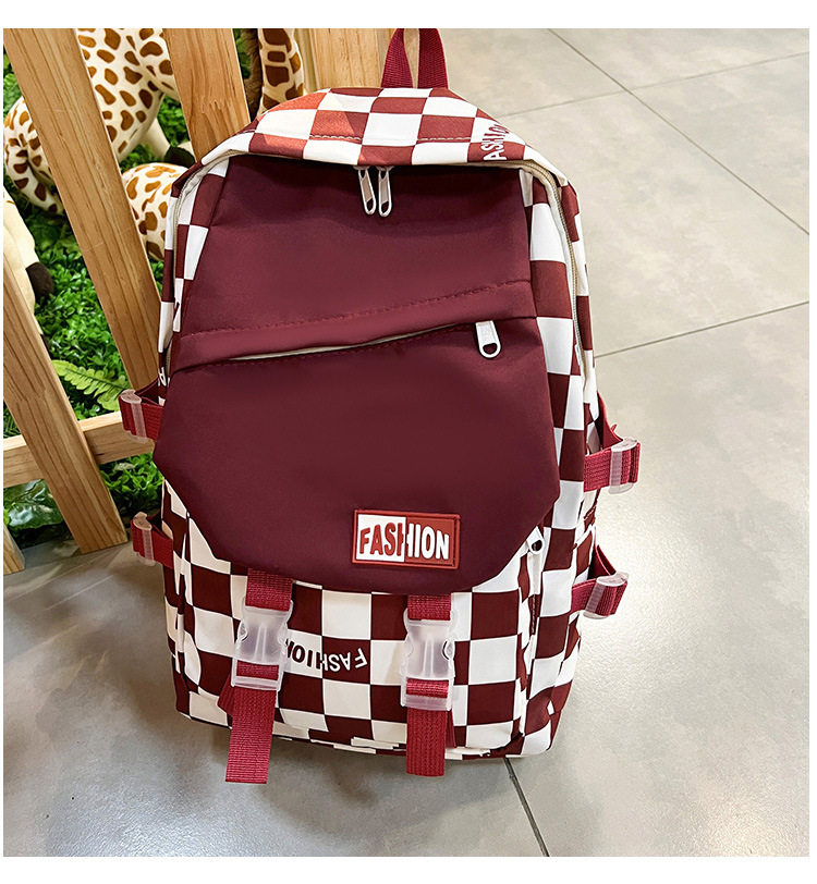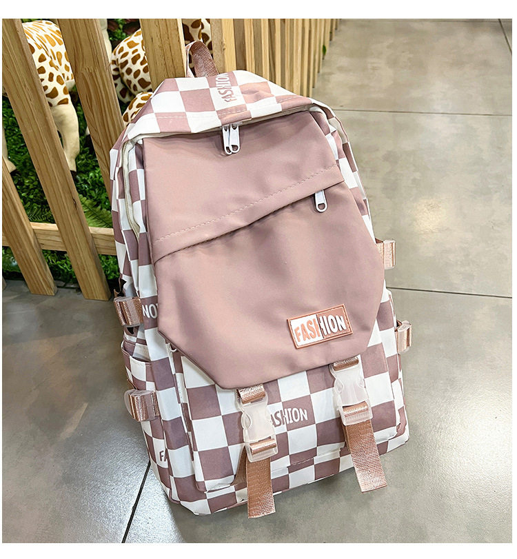 new fashion Korean style cross-border business simple chessboard large capacity trendy student backpack,School Backpacks,Kids’ Backpacks