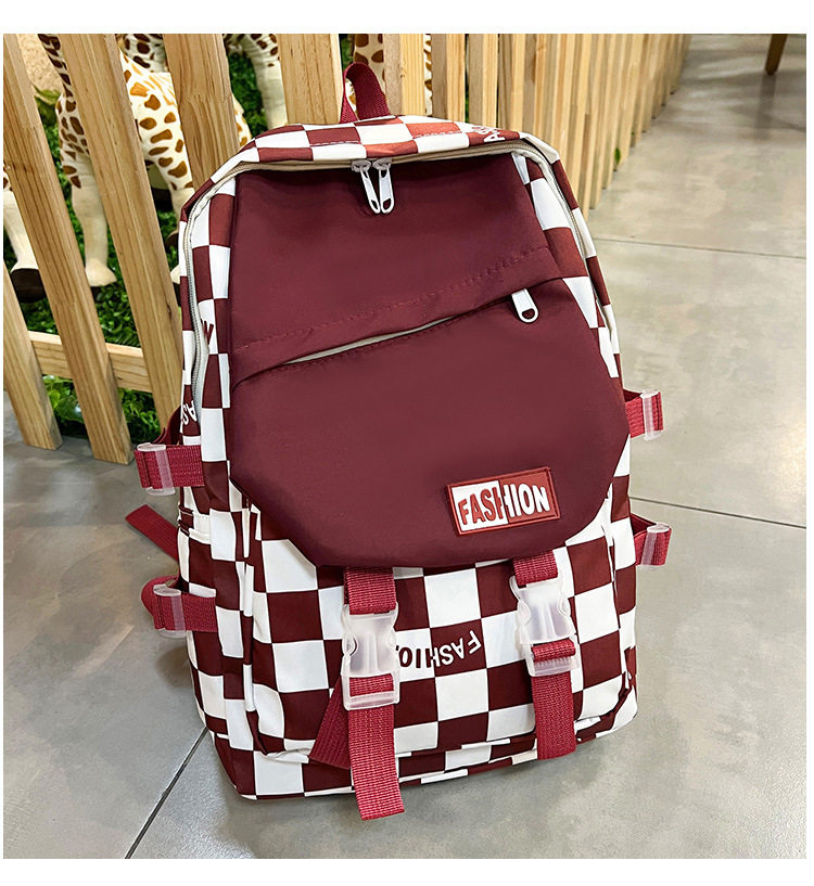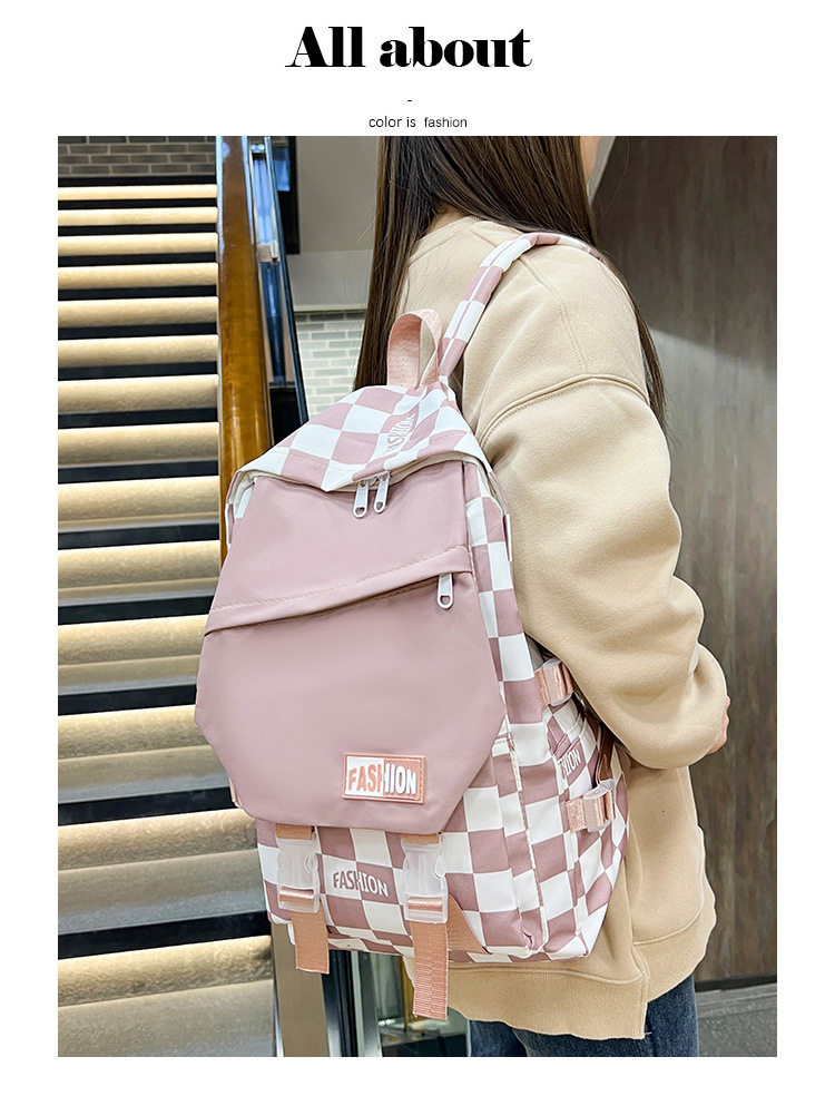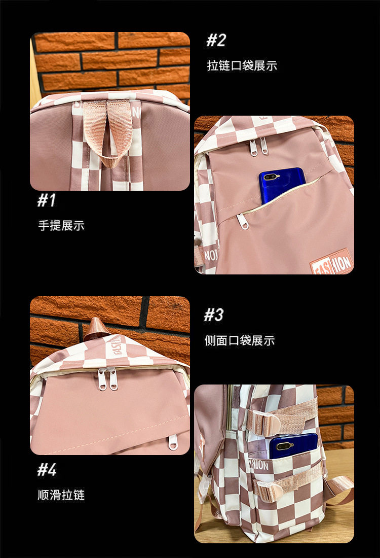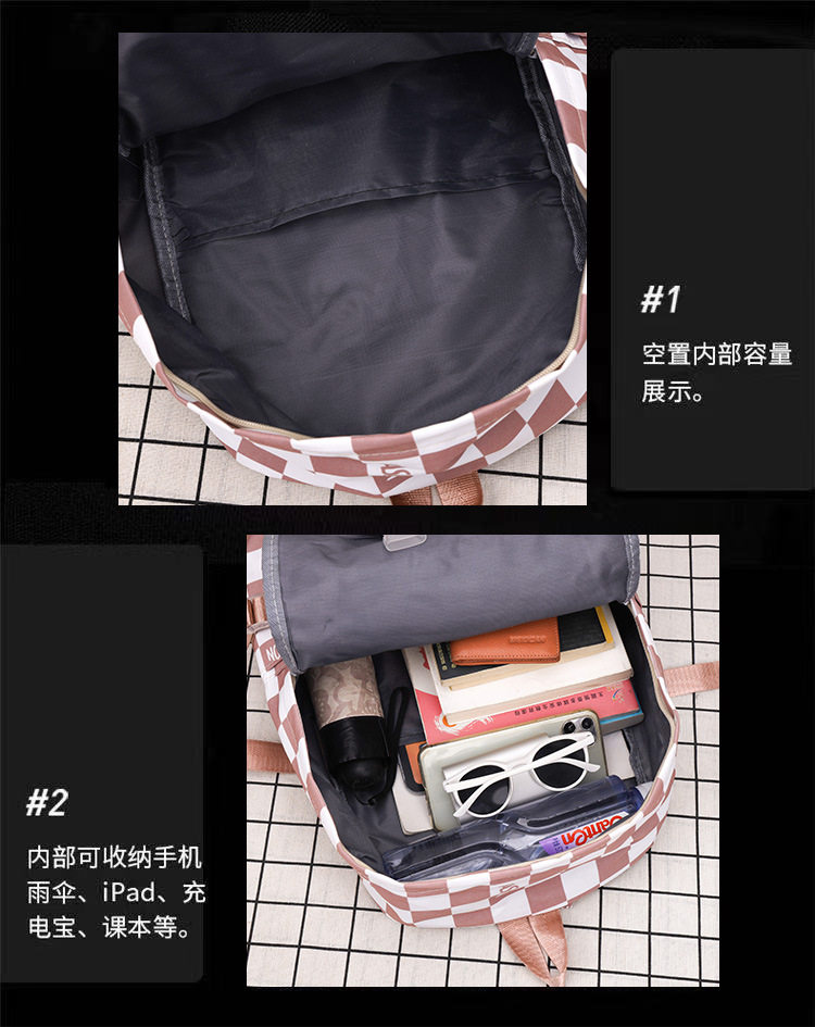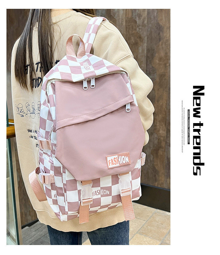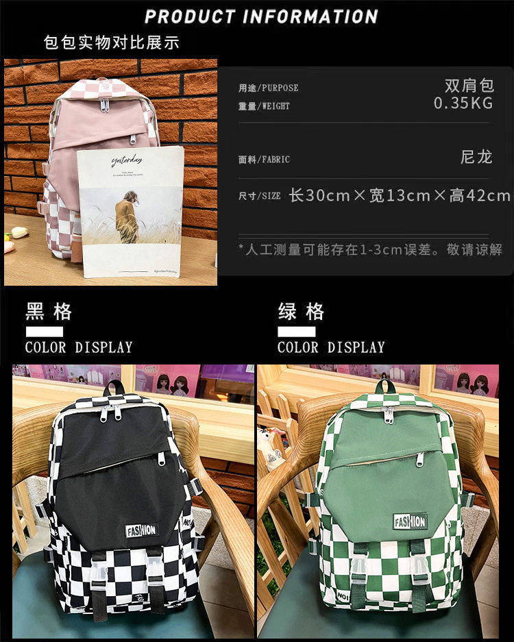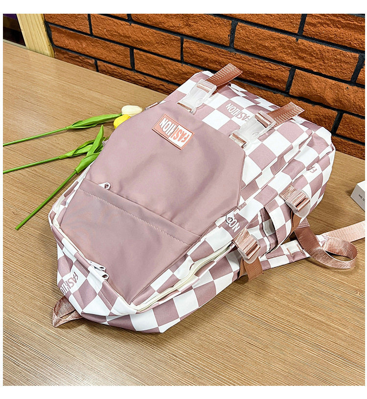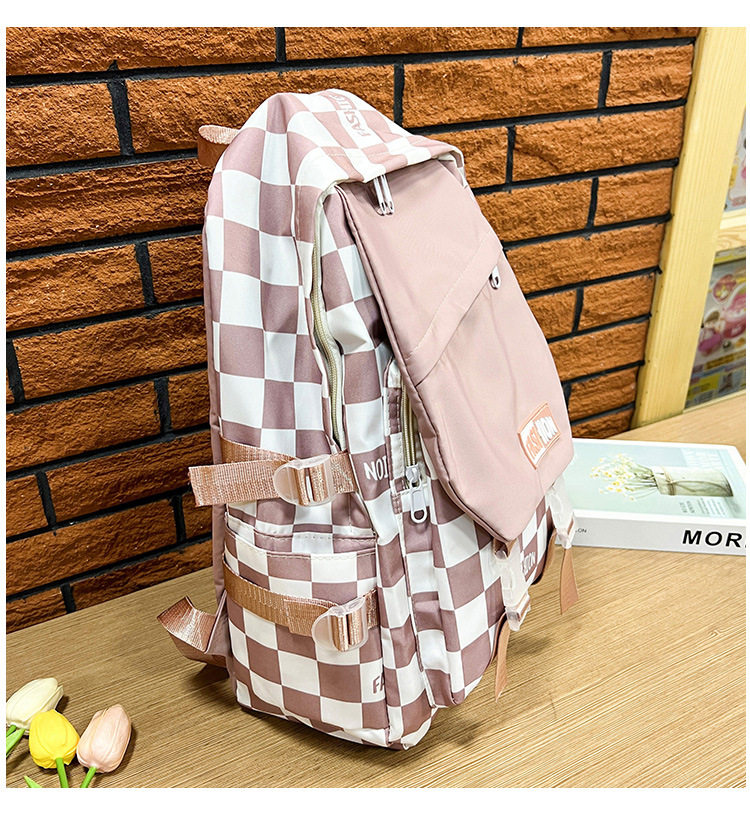 new fashion Korean style cross-border business simple chessboard large capacity trendy student backpack,School Backpacks,Kids’ Backpacks