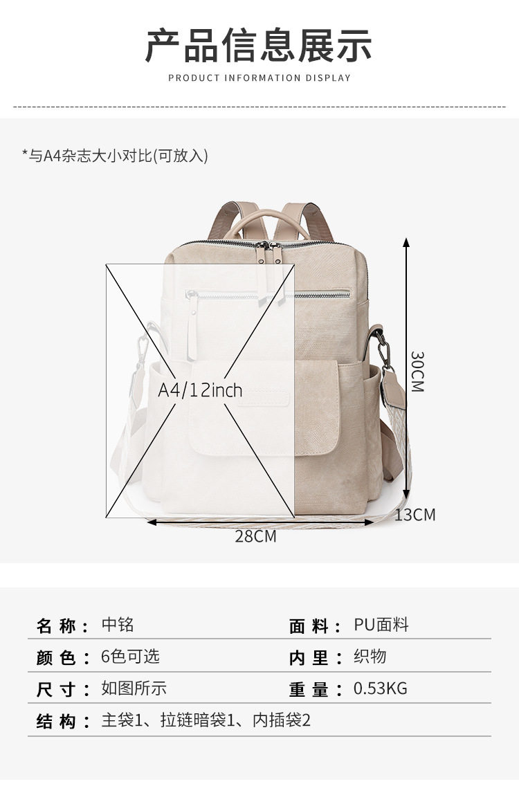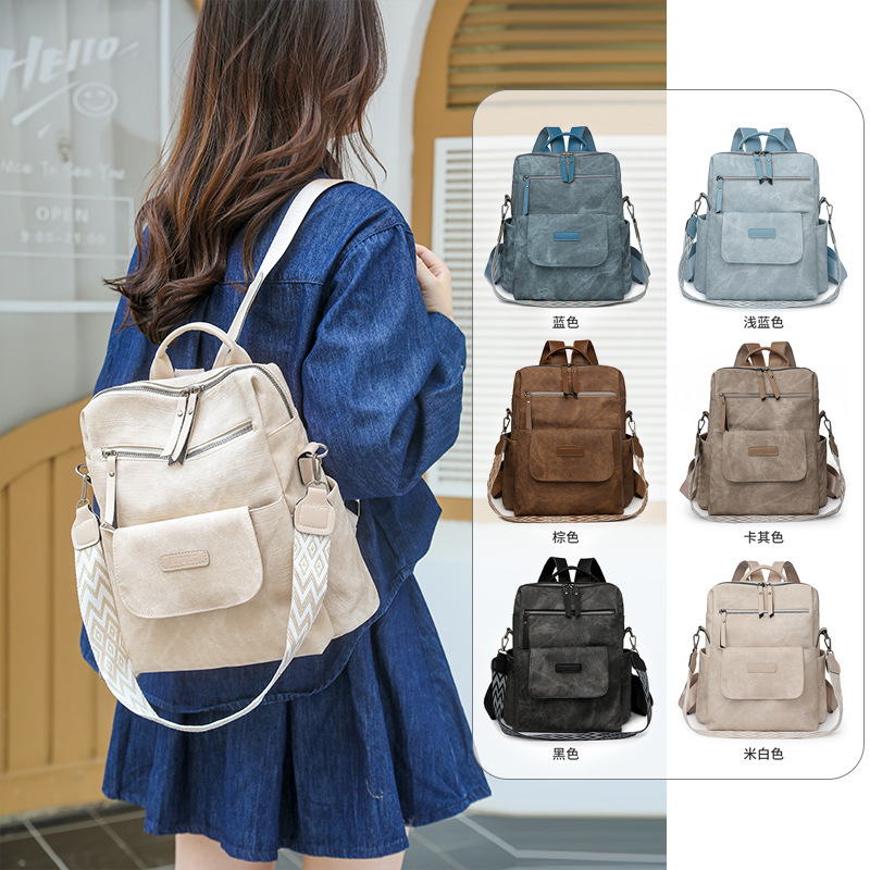 2025 New Women’s Backpack Japanese Bag Single Shoulder Bag Cross-Border Fashion Women’s Casual Travel Retro Pu Cross-Border