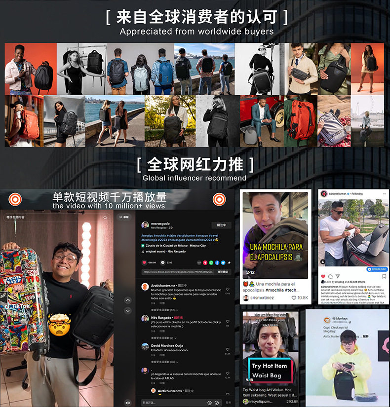 Arctic Hunter Business Men’s Backpack Water-Repellent Large Capacity Expandable Travel Backpack Simple Computer Bag