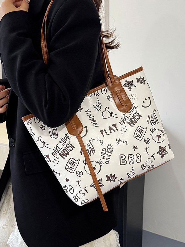 Casual Large Capacity Tote Bag Women’s 2025 New Fashion Printed Cross-Border Large Bag Handbag Women’s Shoulder Bag