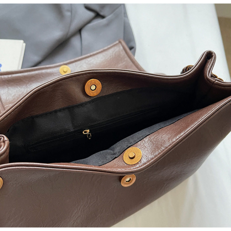 Coffee color Autumn and Winter Retro Large-Capacity Bag for Women 2024 New Fashion Versatile Chain Shoulder Crossbody Bag Handheld Tote Bag