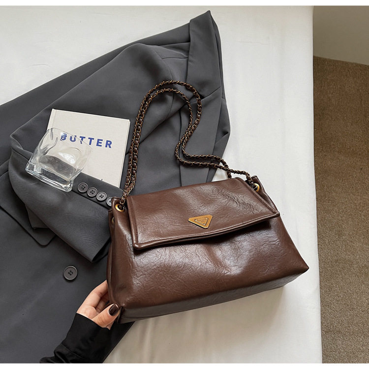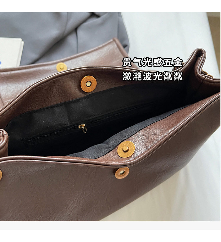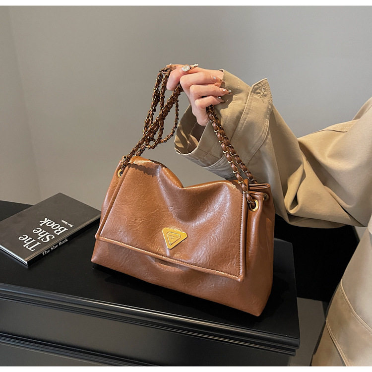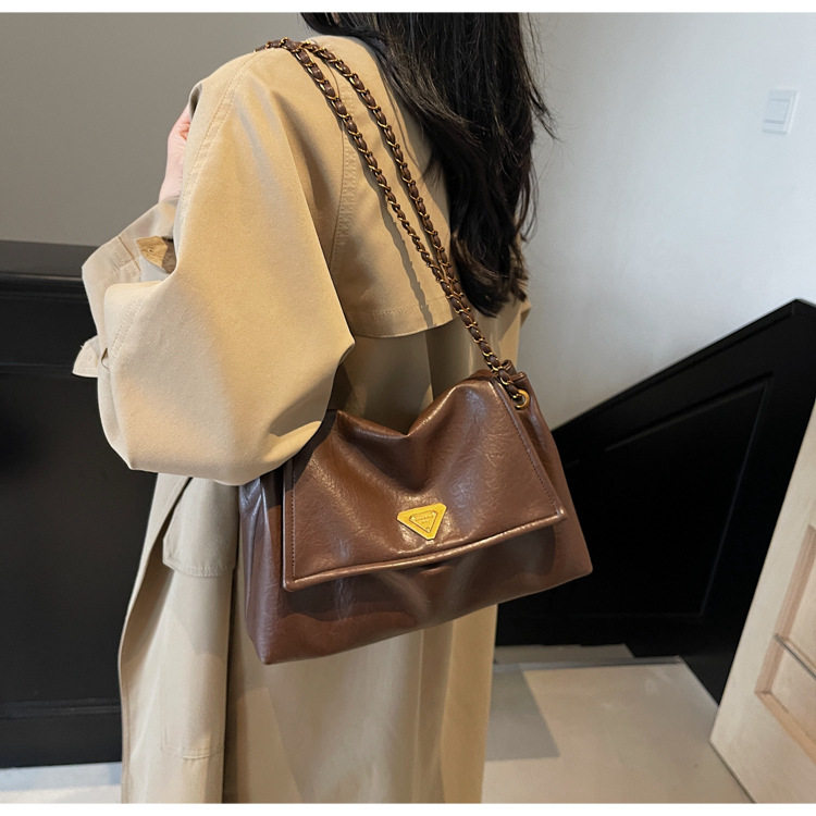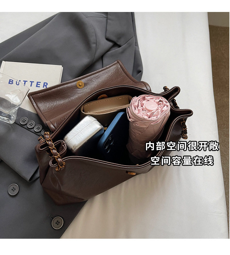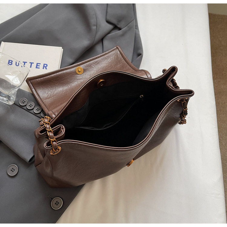 Coffee color Autumn and Winter Retro Large-Capacity Bag for Women 2024 New Fashion Versatile Chain Shoulder Crossbody Bag Handheld Tote Bag