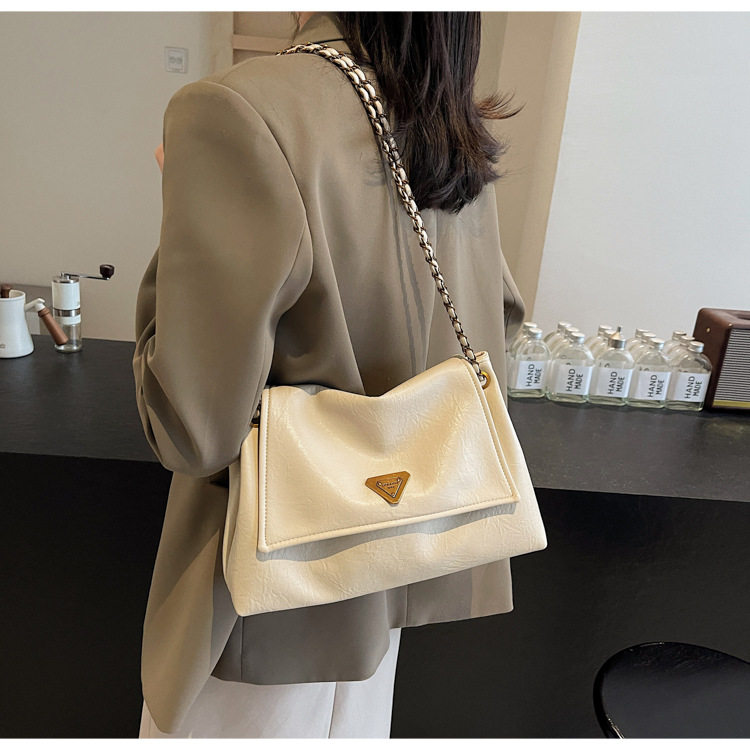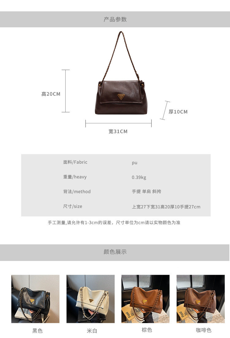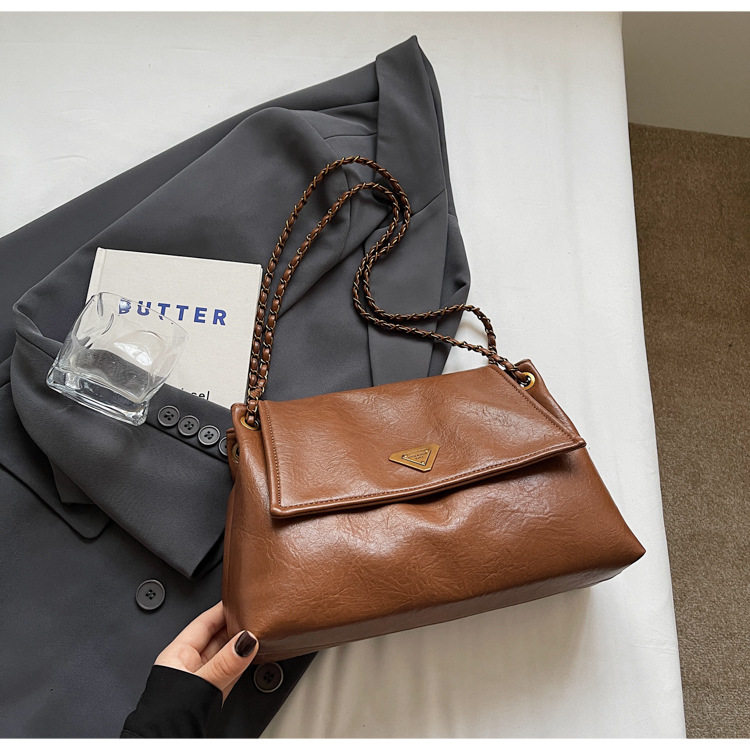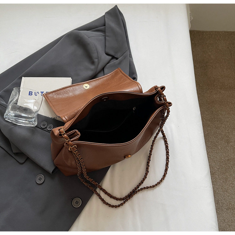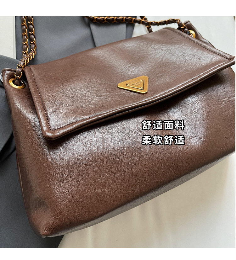 Coffee color Autumn and Winter Retro Large-Capacity Bag for Women 2024 New Fashion Versatile Chain Shoulder Crossbody Bag Handheld Tote Bag
