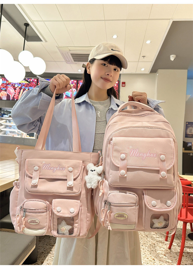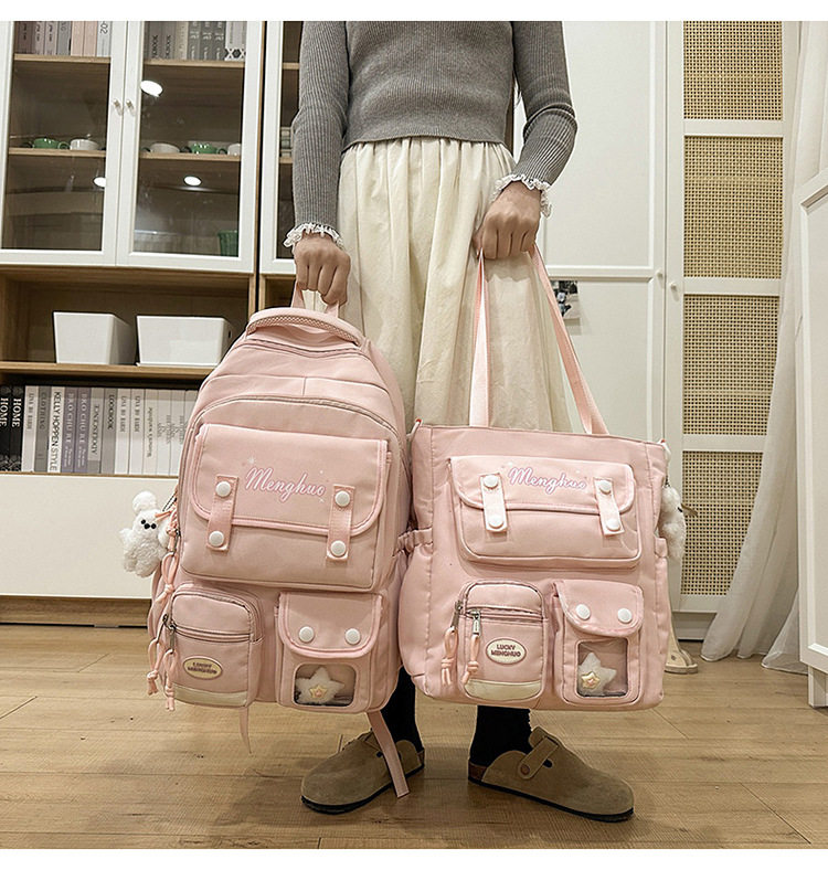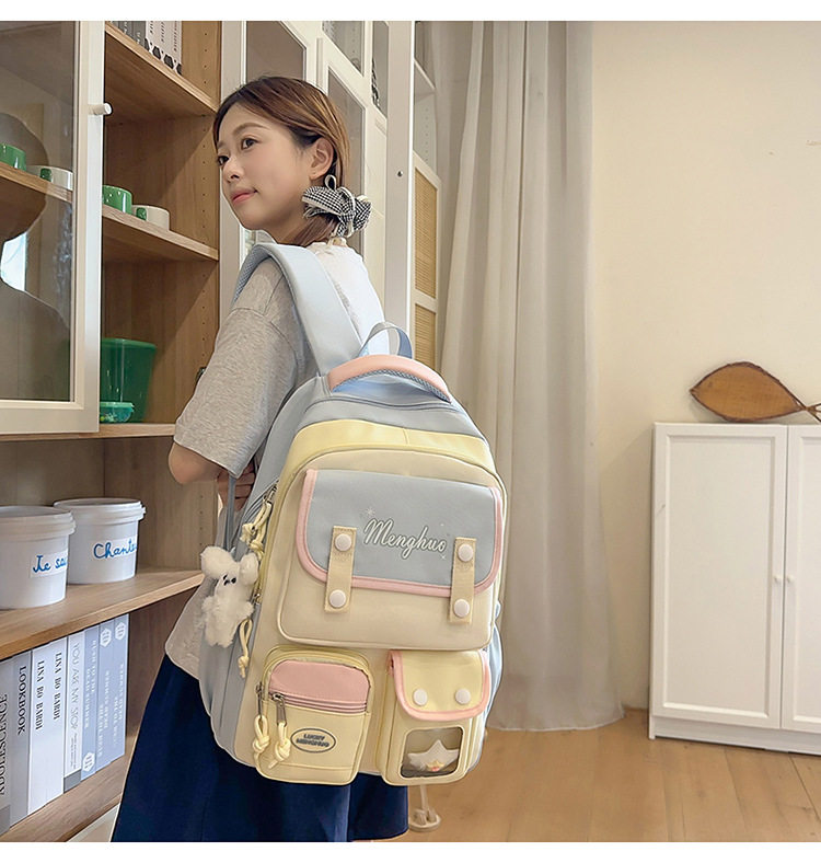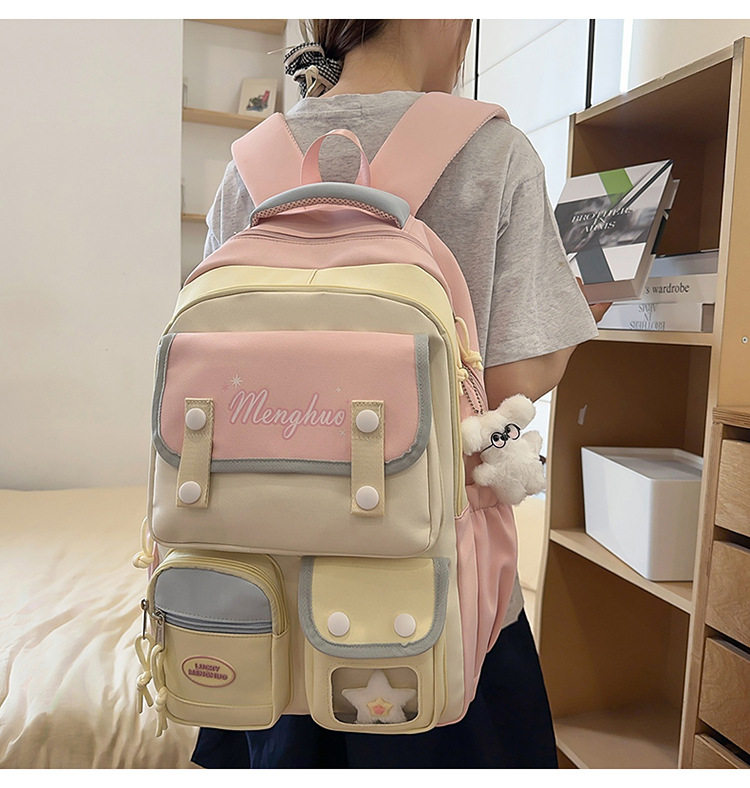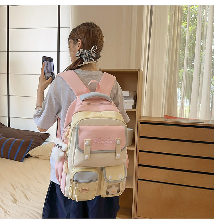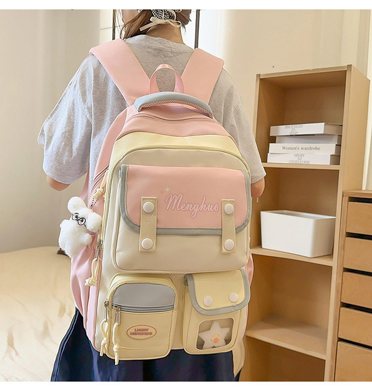 - Color: Pink and yellow backpack