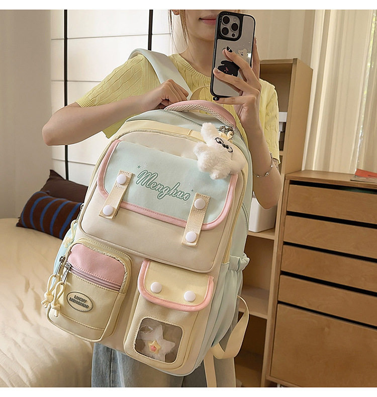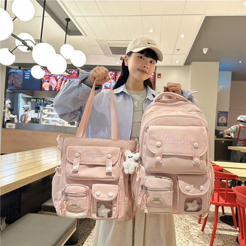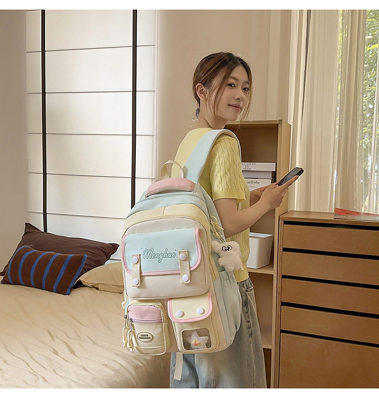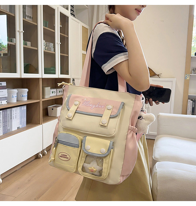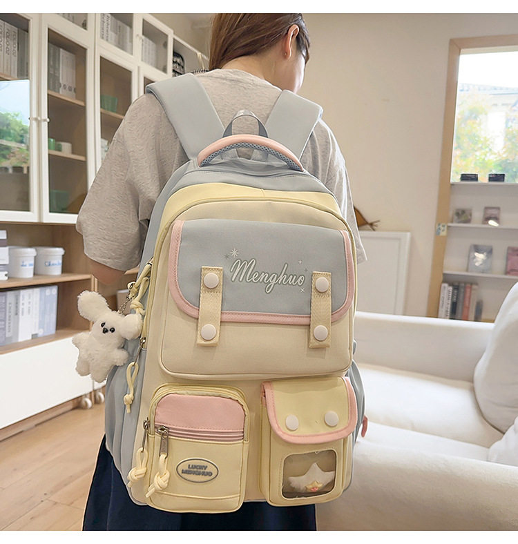 - Color: Pink and yellow backpack