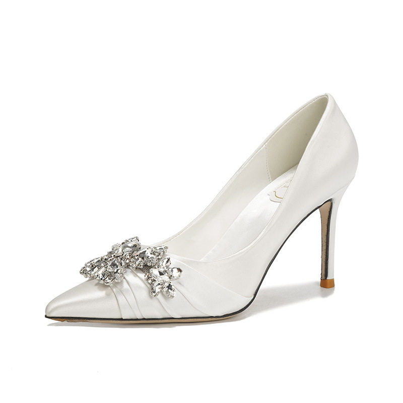 French High Heels Women’s 2025 Silver White Rhinestone Stiletto Elegant Ladies Wedding Shoes Bridal Shoes Not Tired Feet