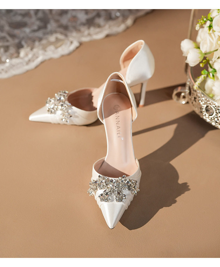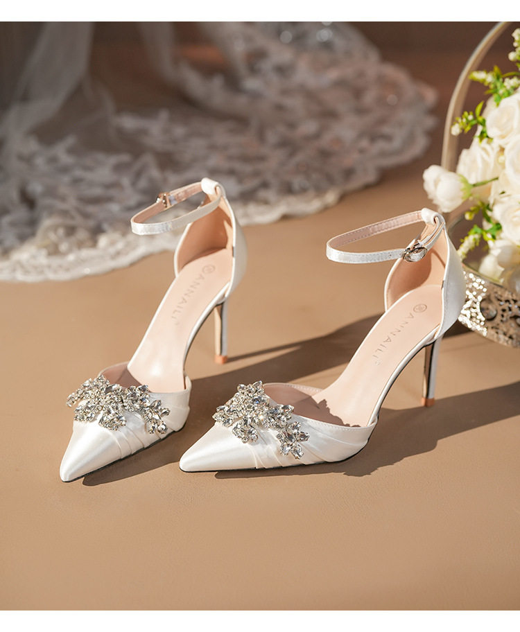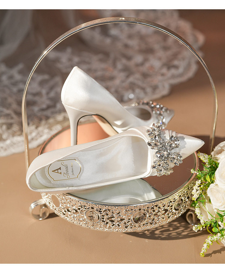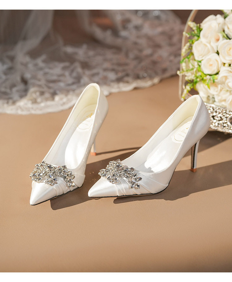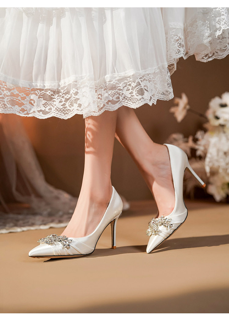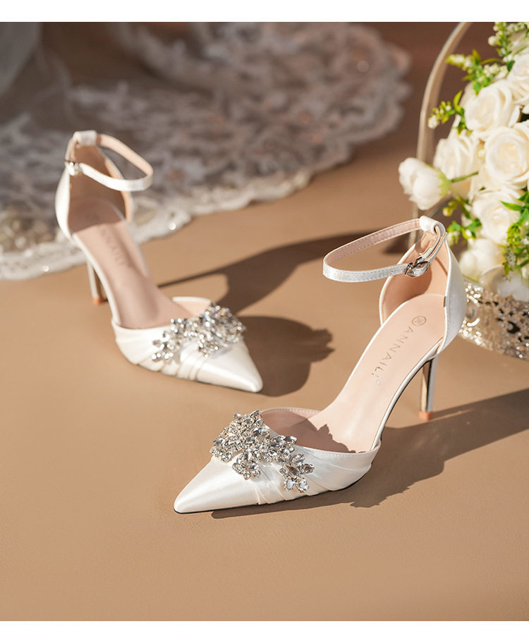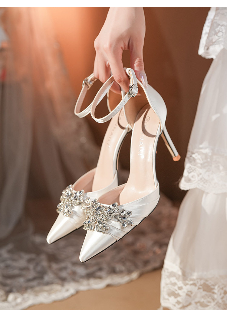 French High Heels Women’s 2025 Silver White Rhinestone Stiletto Elegant Ladies Wedding Shoes Bridal Shoes Not Tired Feet