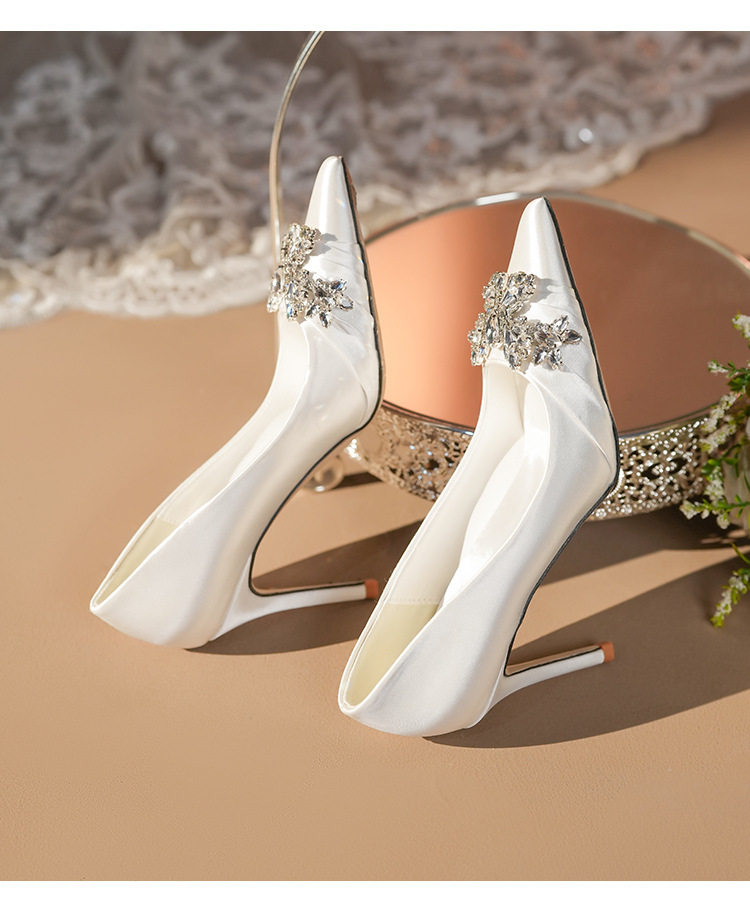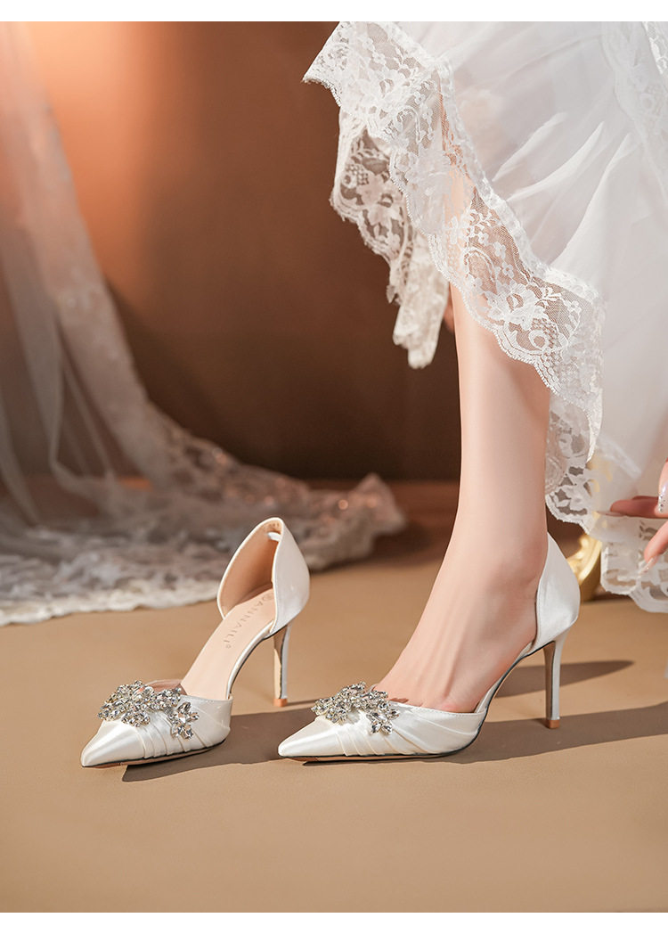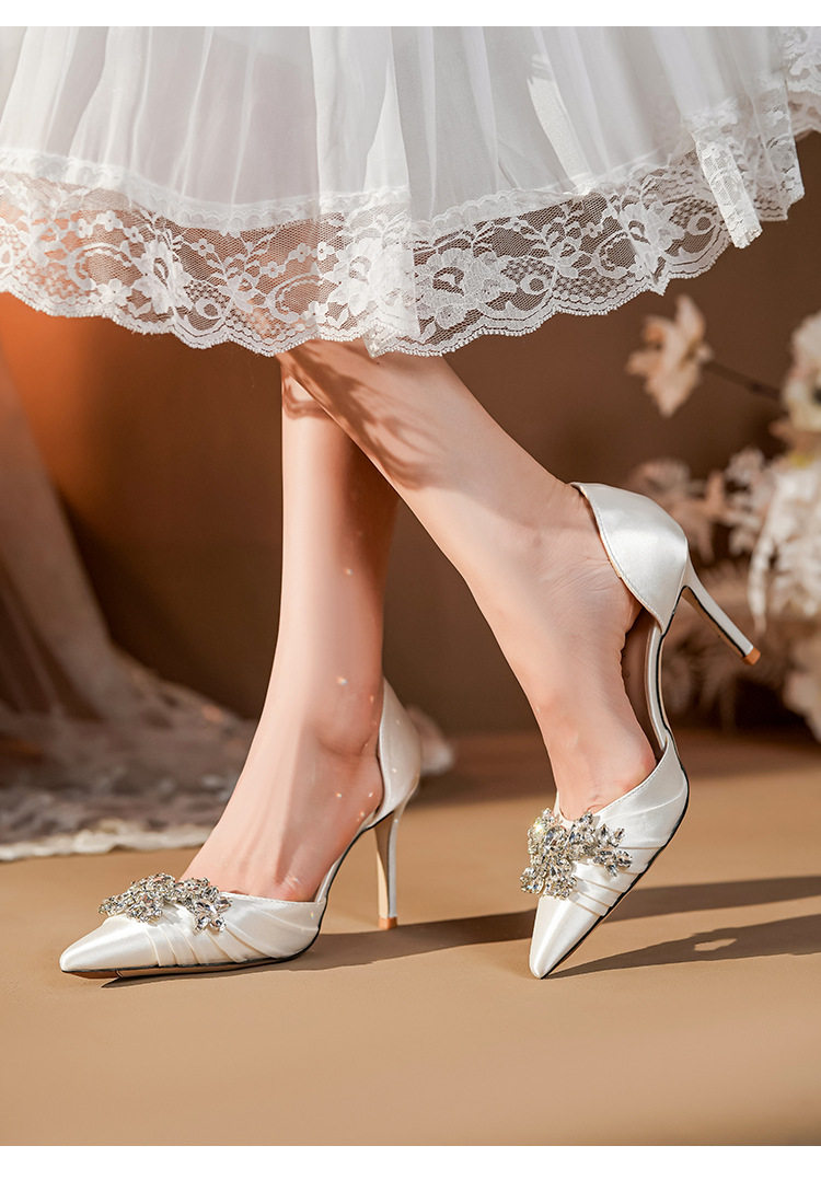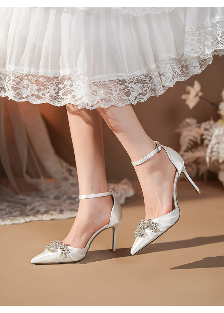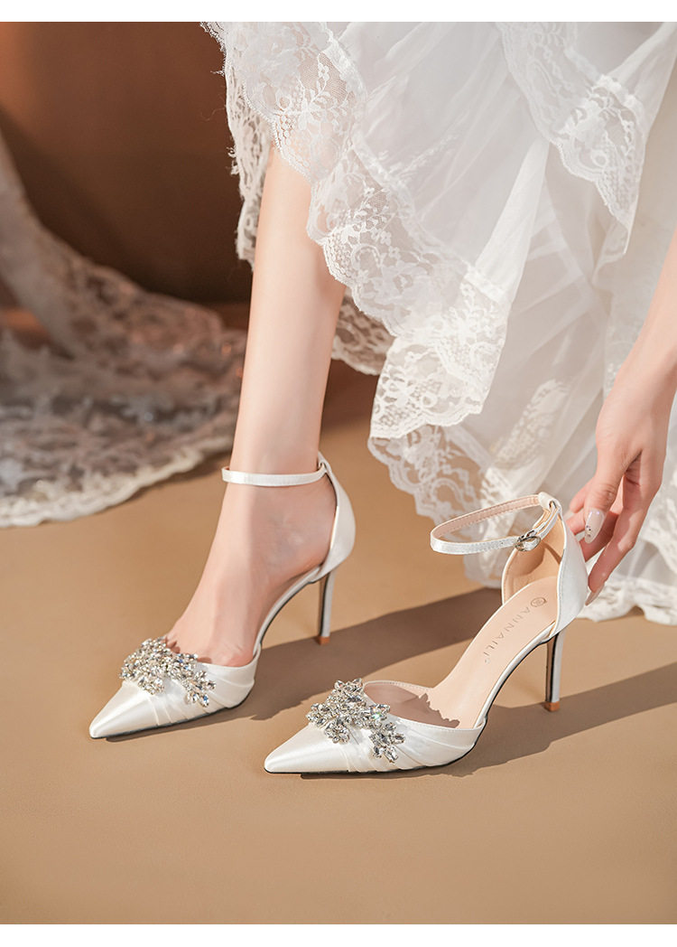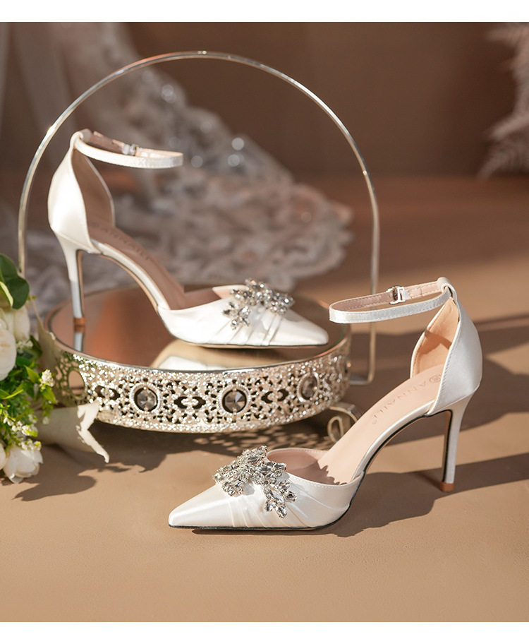 French High Heels Women’s 2025 Silver White Rhinestone Stiletto Elegant Ladies Wedding Shoes Bridal Shoes Not Tired Feet