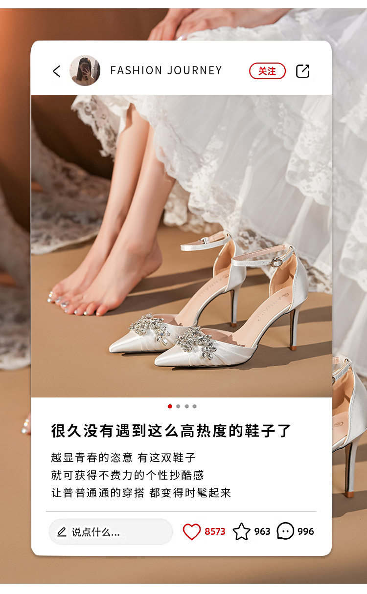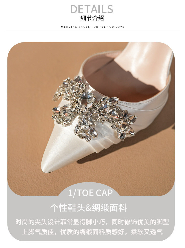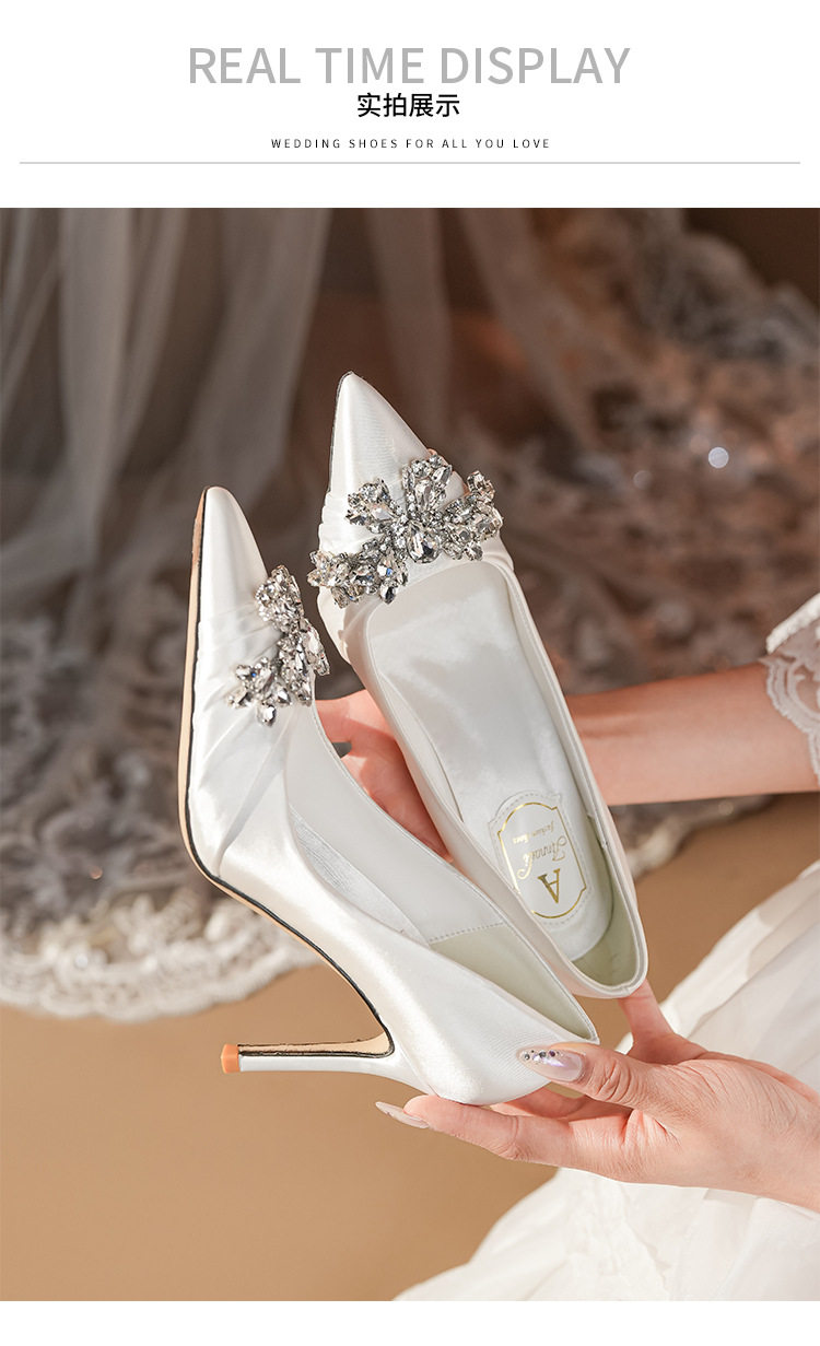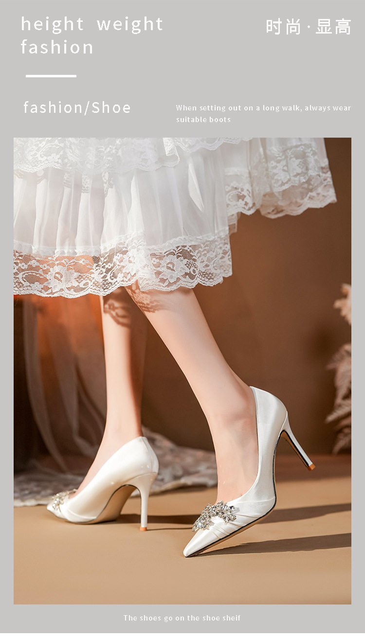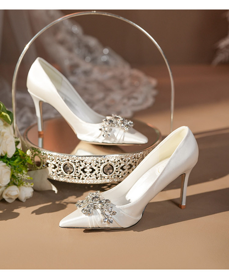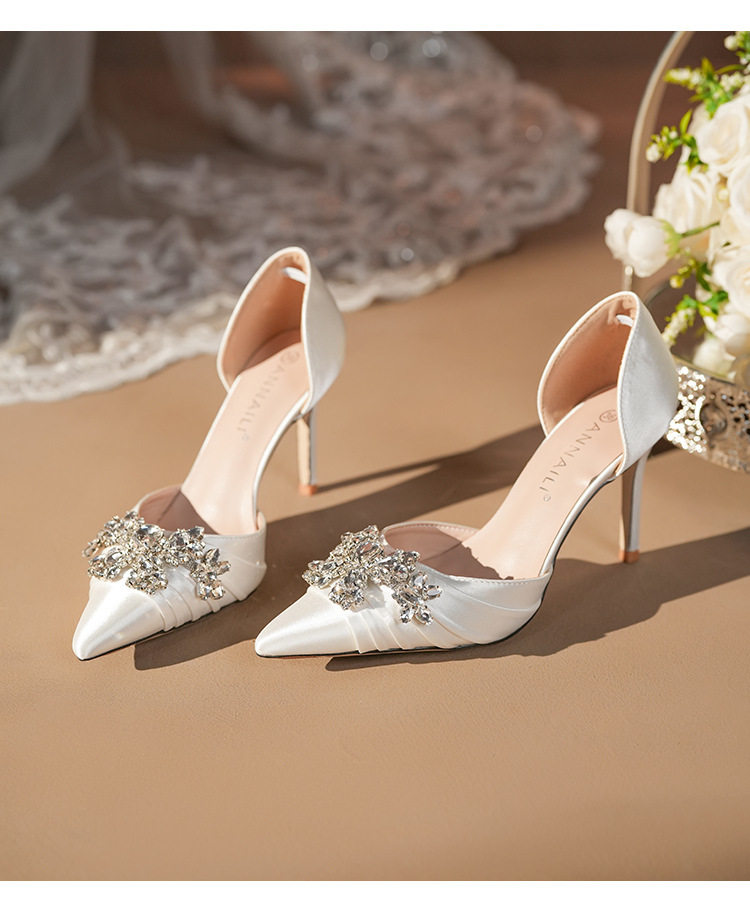 French High Heels Women’s 2025 Silver White Rhinestone Stiletto Elegant Ladies Wedding Shoes Bridal Shoes Not Tired Feet