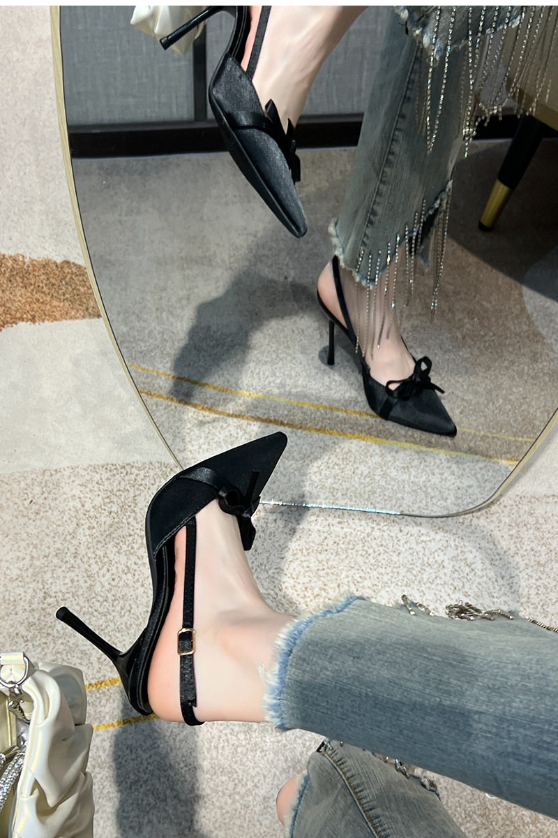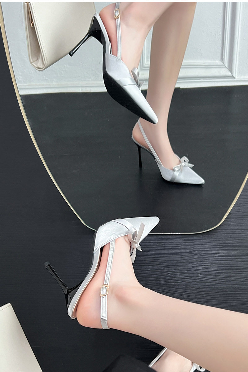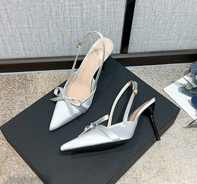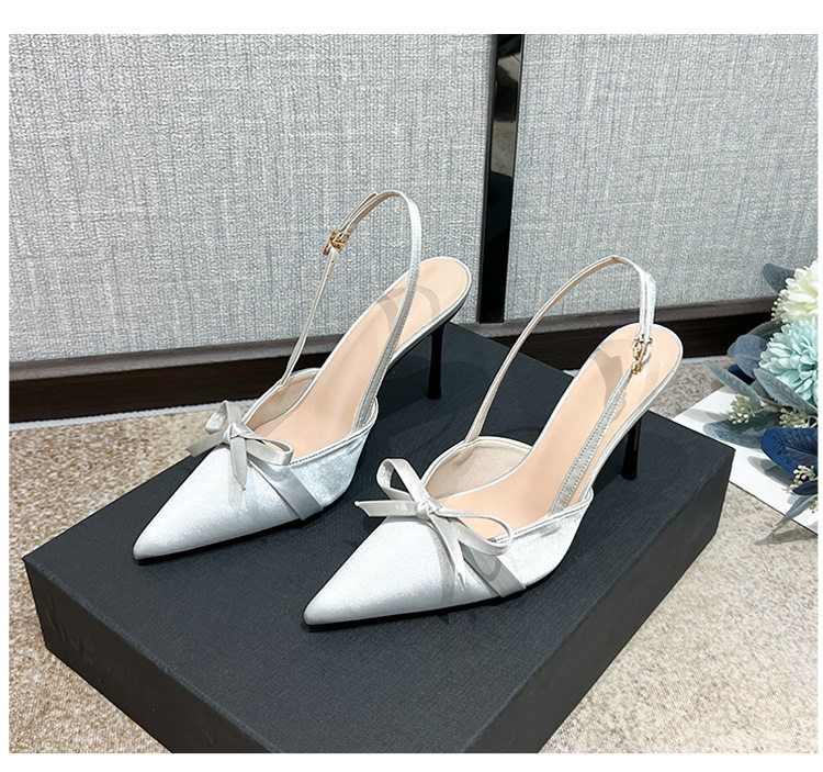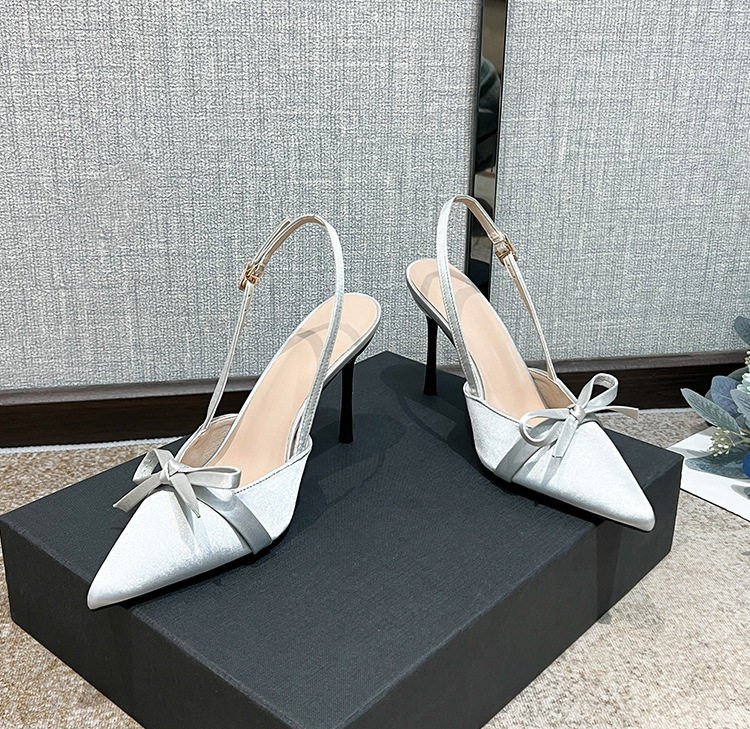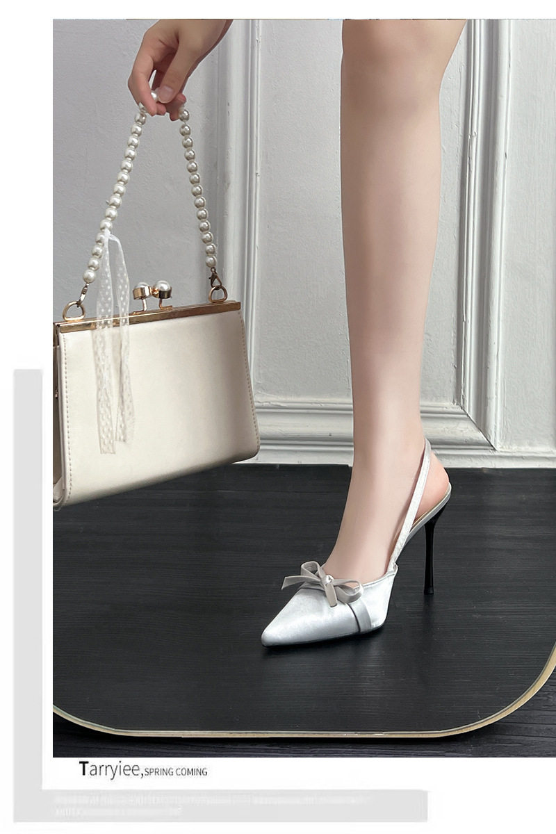 French Satin Bow Bridal Design Niche Wedding Dress High Heel Wedding Shoes Hollow Toe All-match Sandals for Women