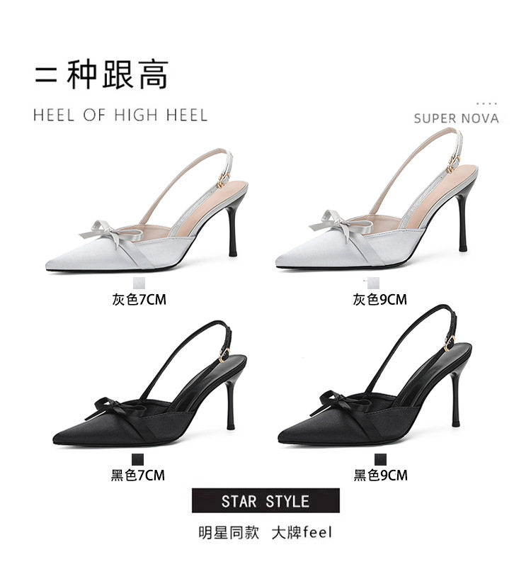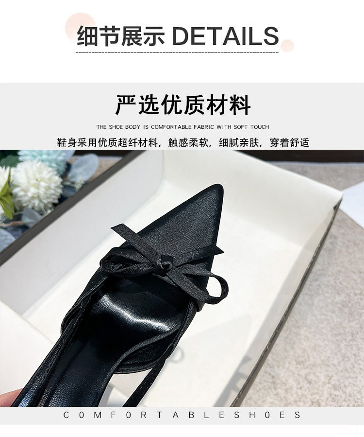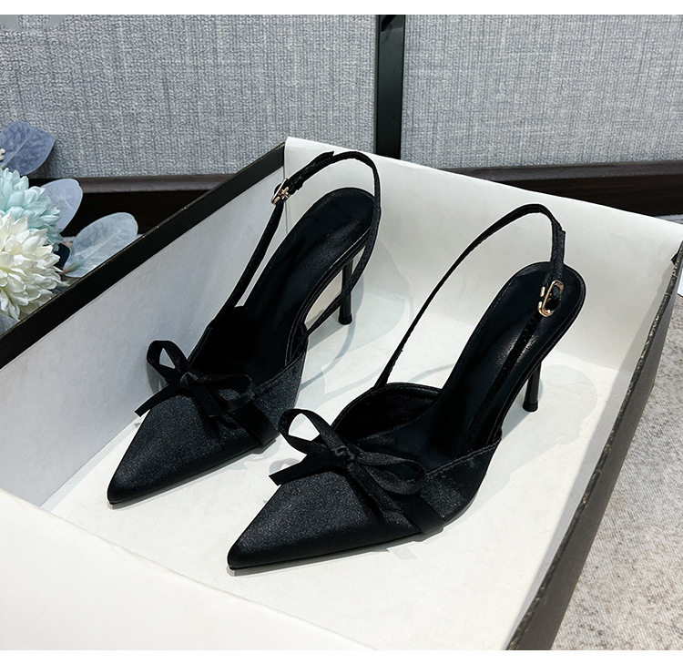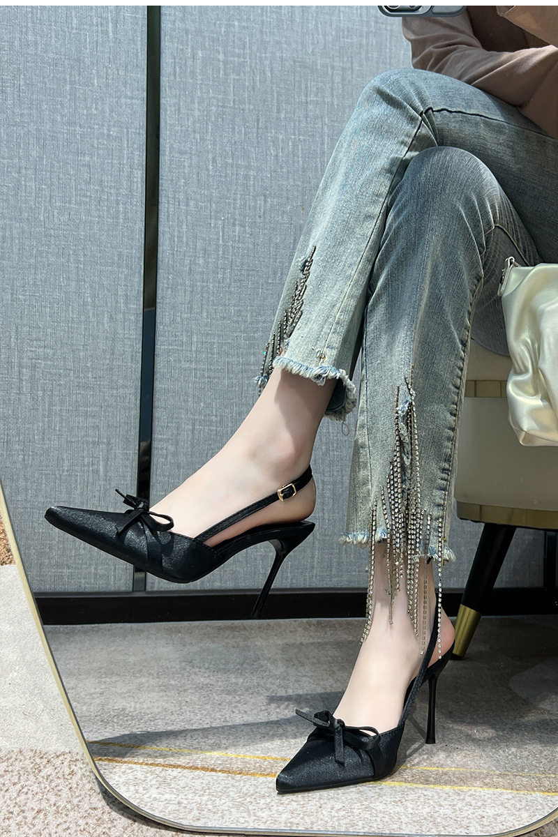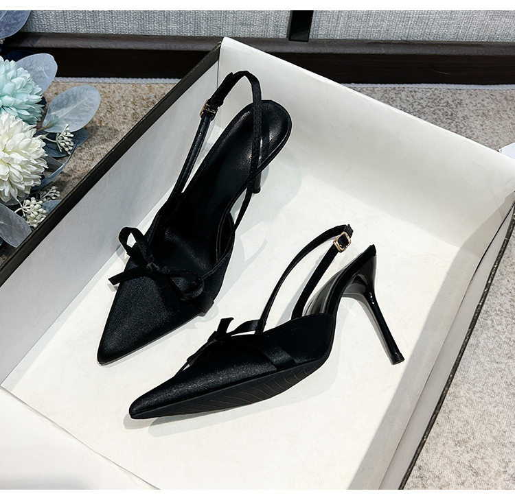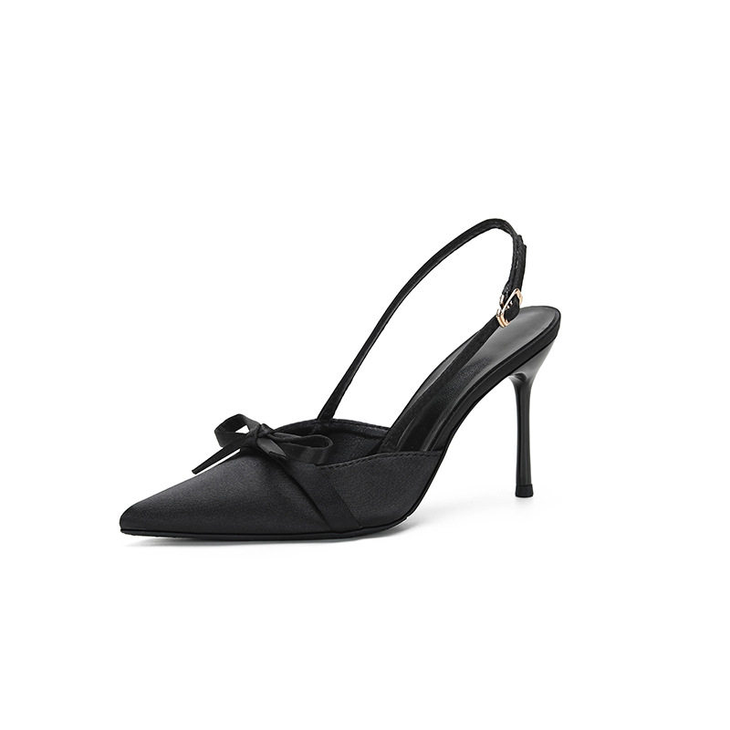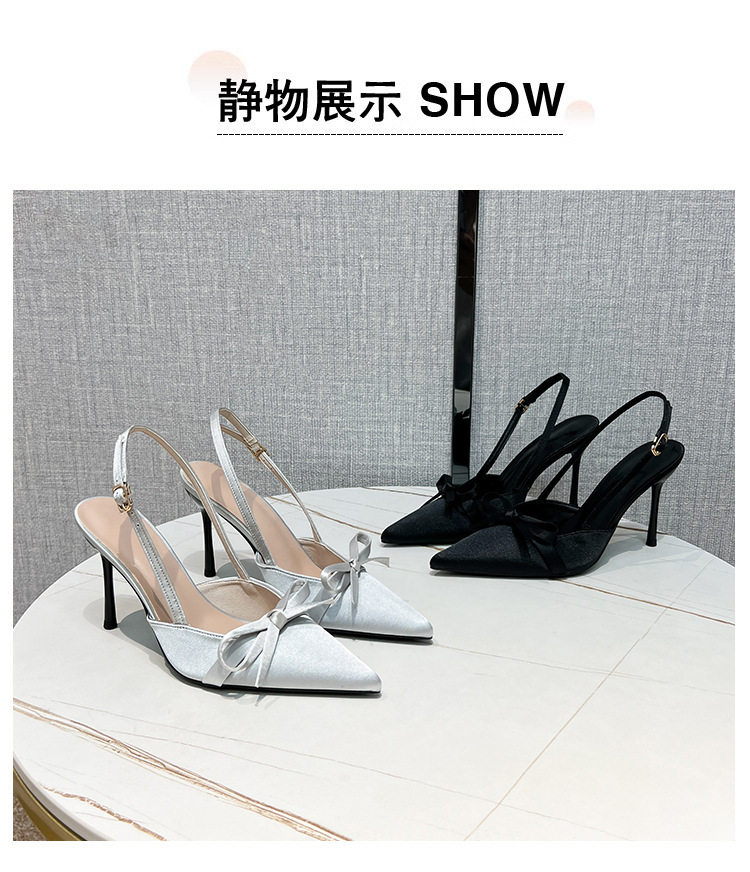 French Satin Bow Bridal Design Niche Wedding Dress High Heel Wedding Shoes Hollow Toe All-match Sandals for Women