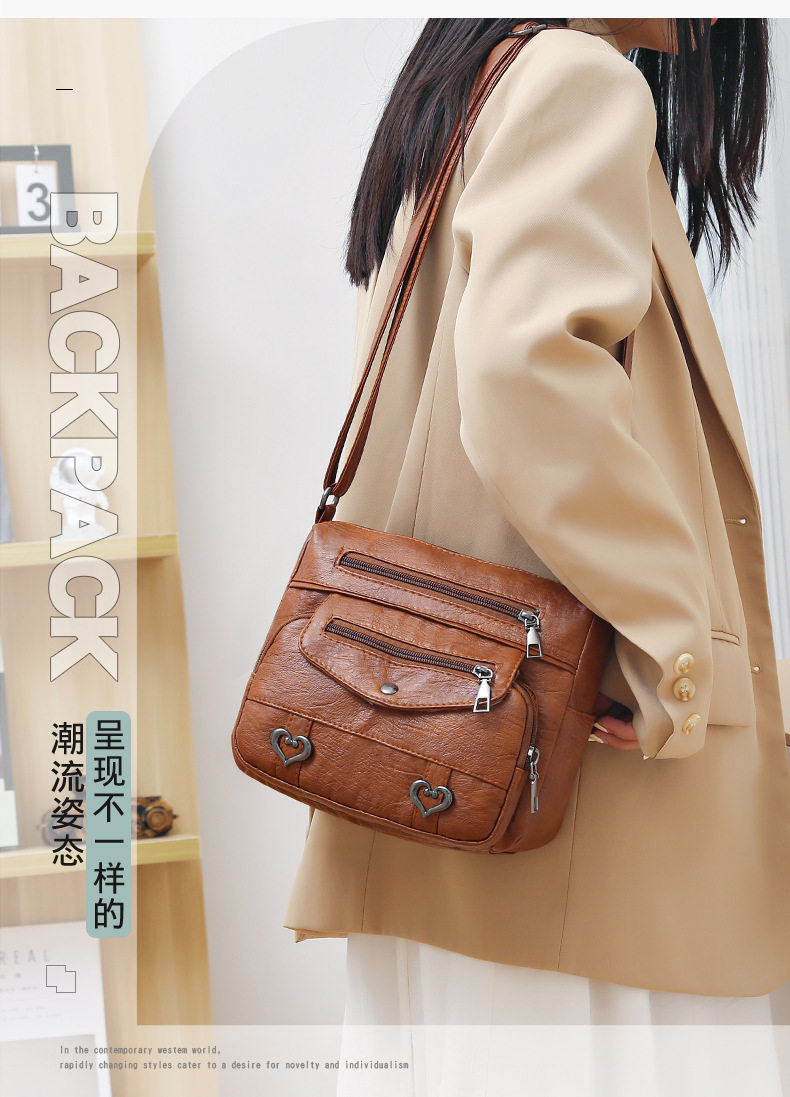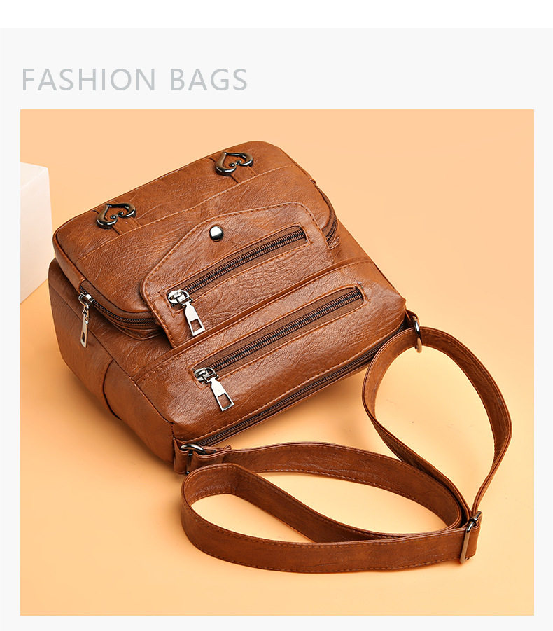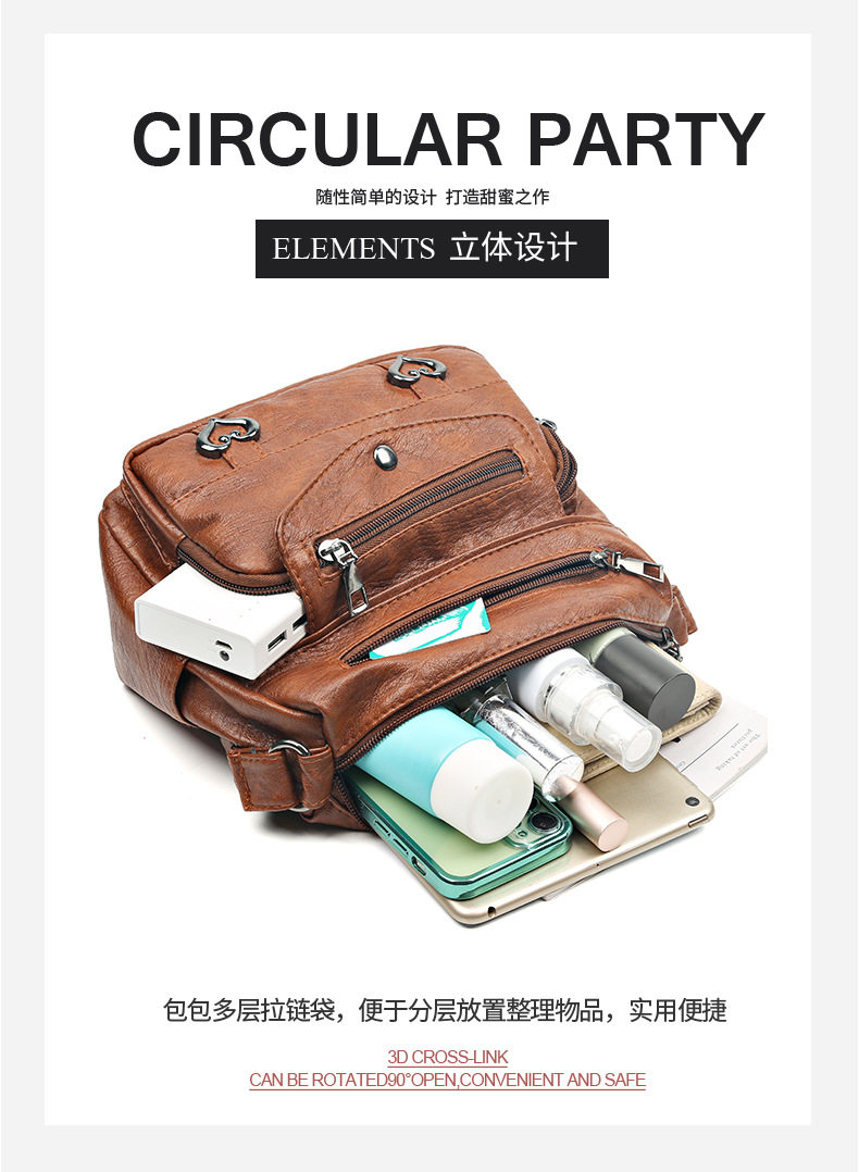 Middle-Aged and Elderly Women’s Bags, Cross-Body Bags, Soft Leather Versatile Multi-Pocket Shoulder Bags, Women’s Mother Bags, Travel Backpacks