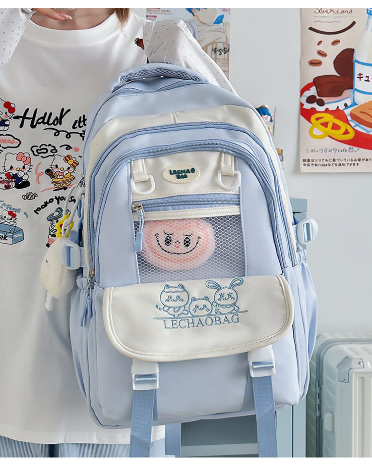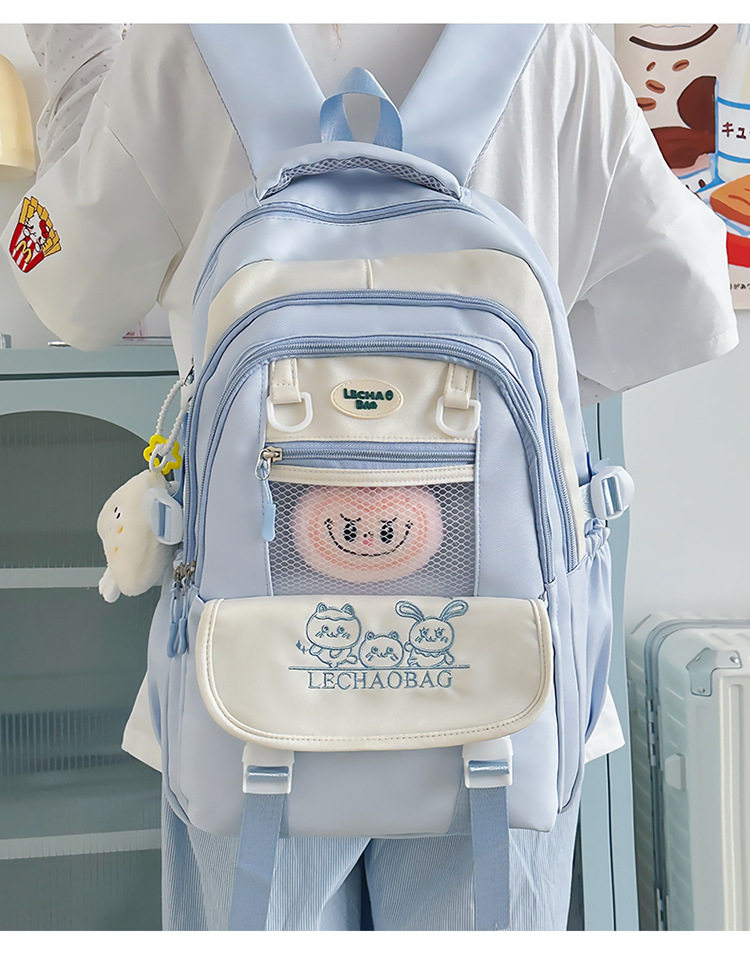 New College Style Backpack for Women, Small Fresh Multi-Compartment Primary School Student, Junior High School Student School Bag, Korean Style Lightweight Backpack - Elegant Shop