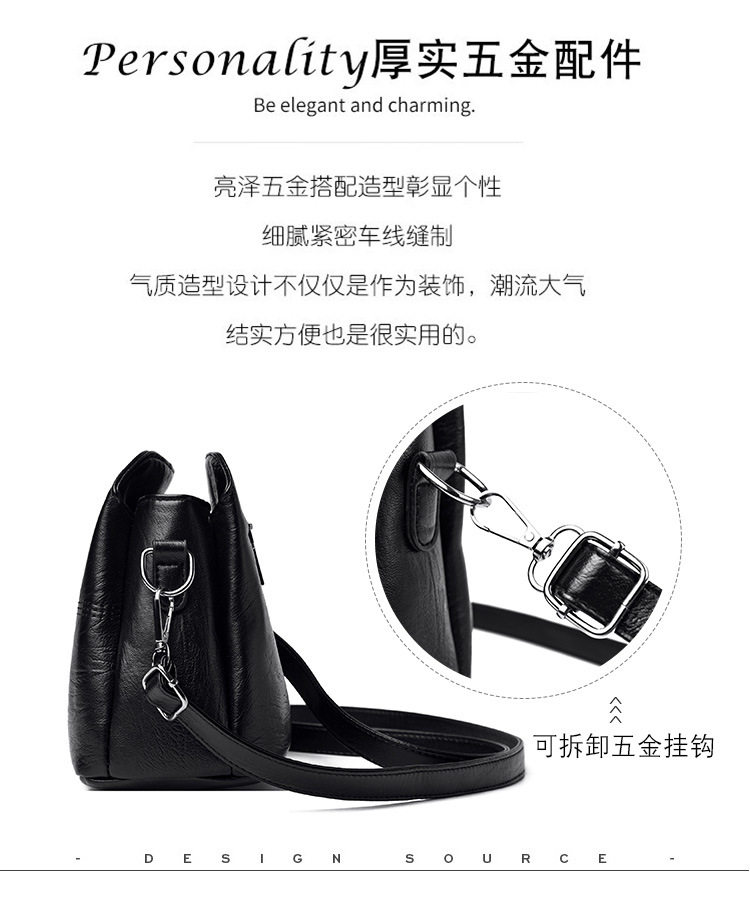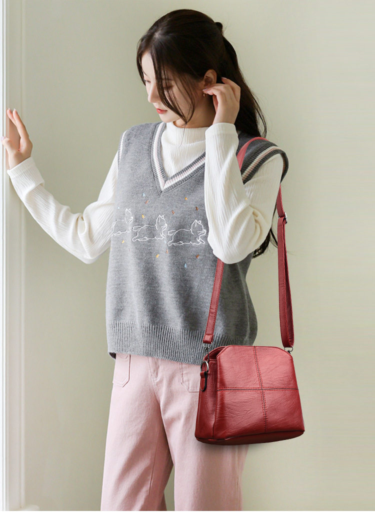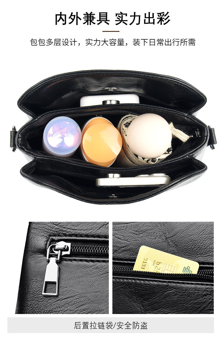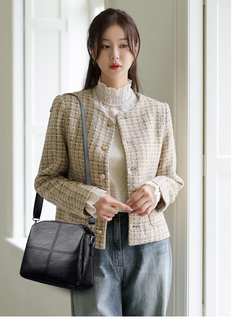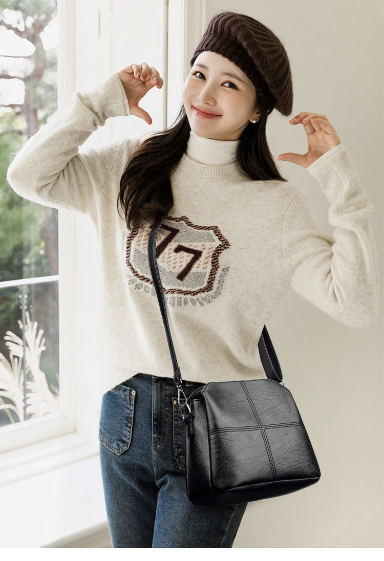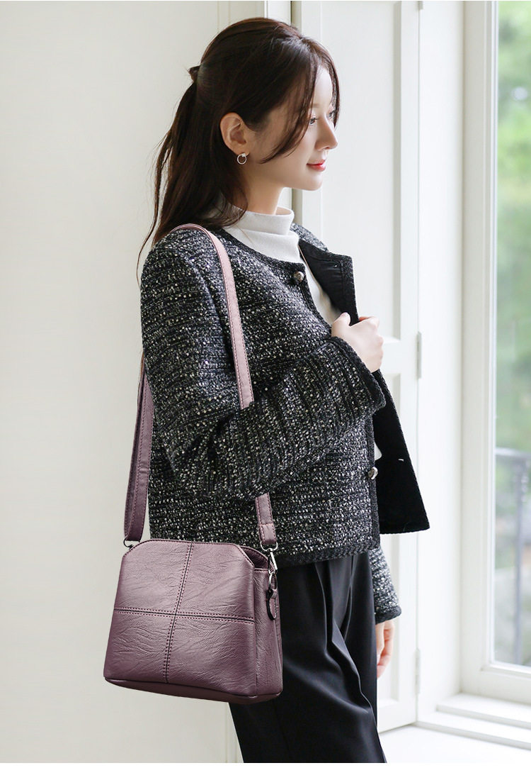 New Women’s Bag Fashion Bucket Bag Multi-layer All-match Korean Style Middle-aged Mother Bag Soft Leather Women’s Shoulder Bag Crossbody Bag
