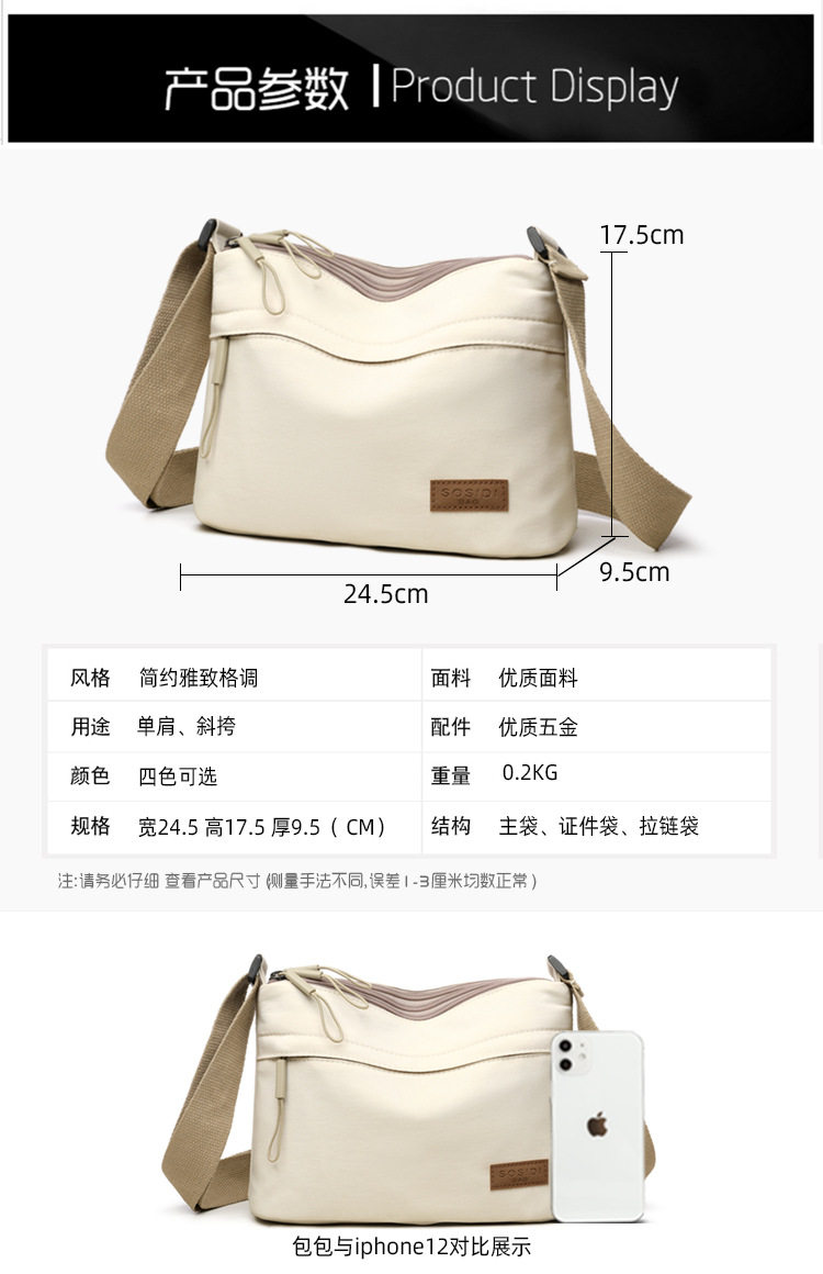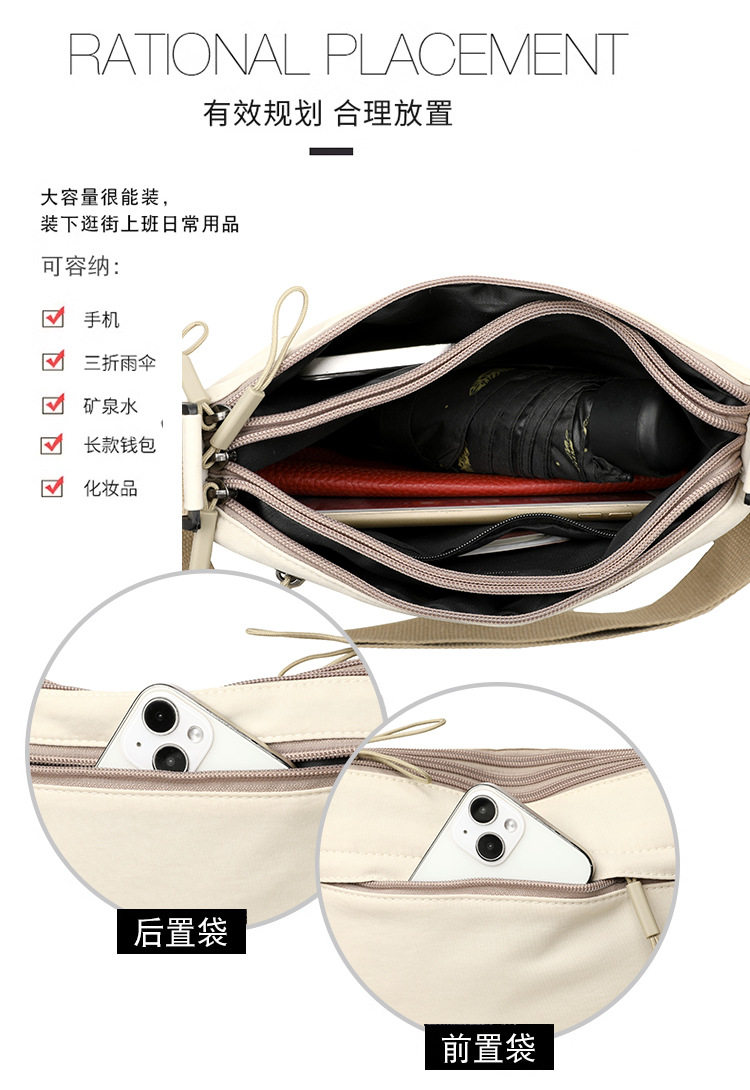 Nylon Lightweight Multi-Layer Large-Capacity Nylon Bag Women’s New Casual Waterproof Portable Fashionable One-Shoulder Cross-Body Small Square Bag